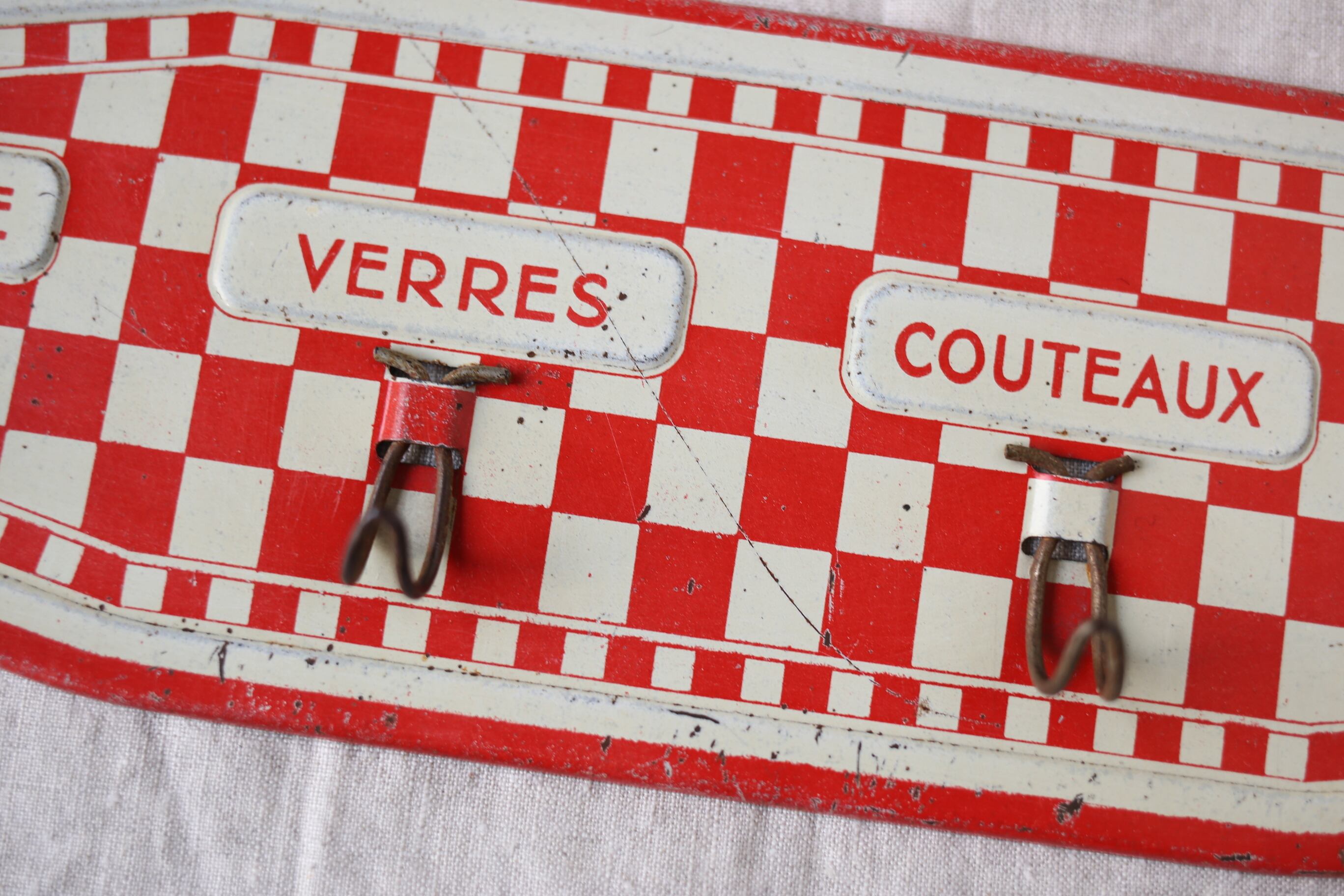 フランス アンティーク ヴィンテージ トーションフック ブリキ 市松模様 N-01510