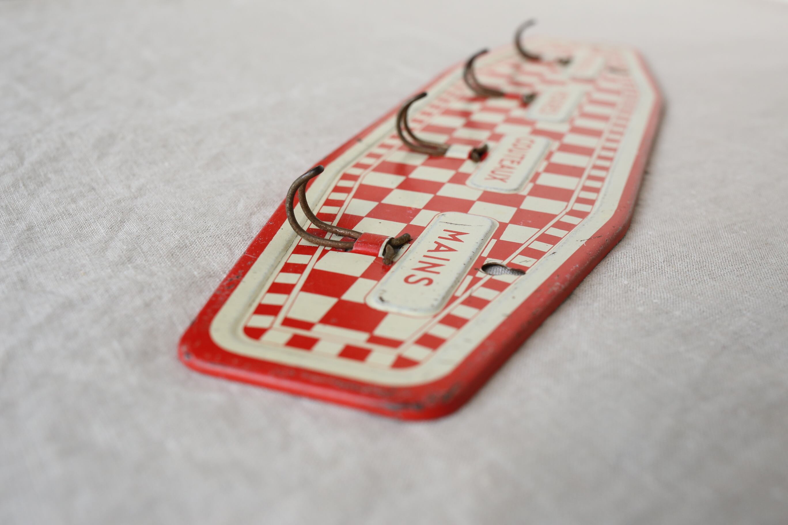 市松模様のブリキのトーションフックはとても人気があり、ここまで状態の良いものにはなかなか出会うことがありません。