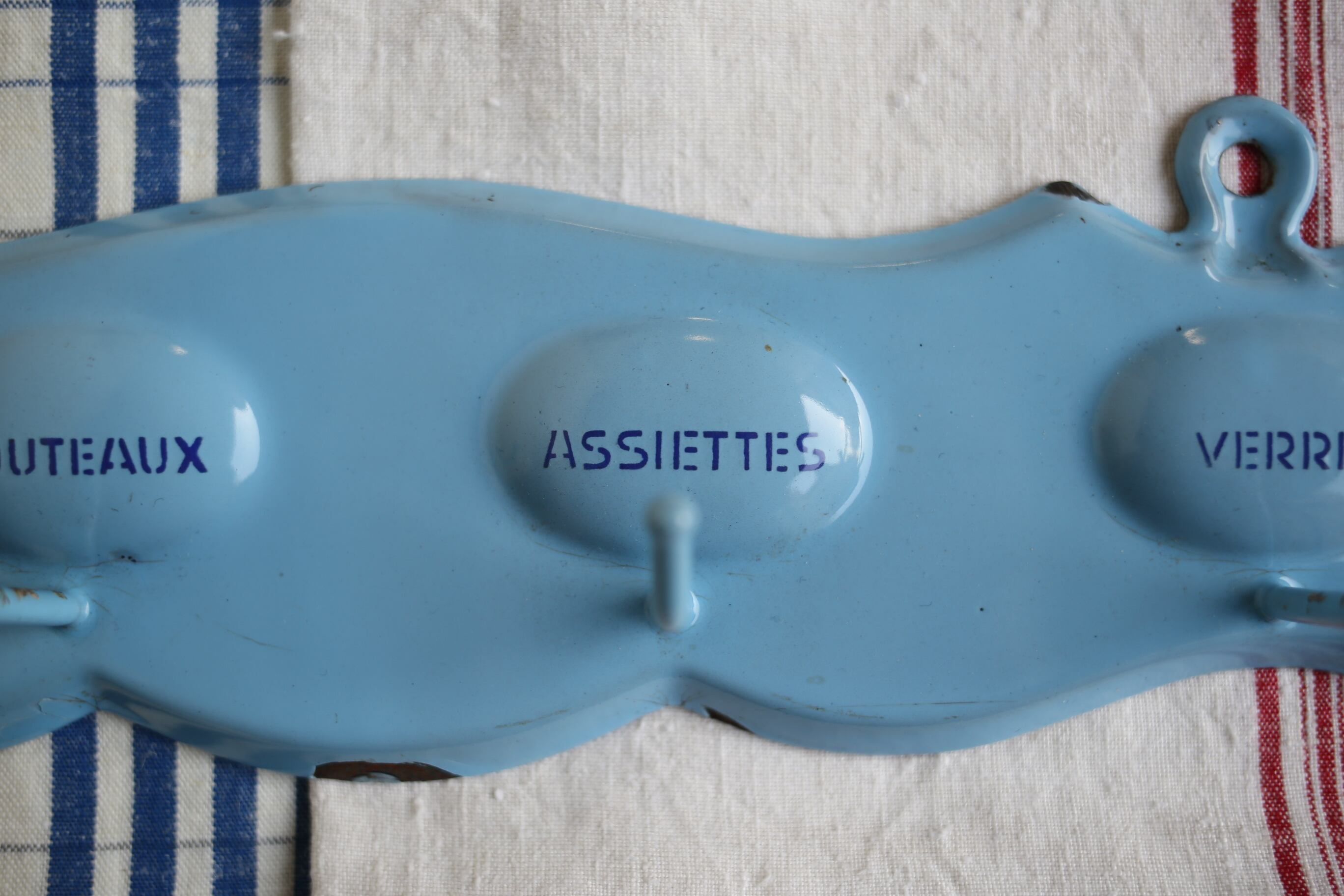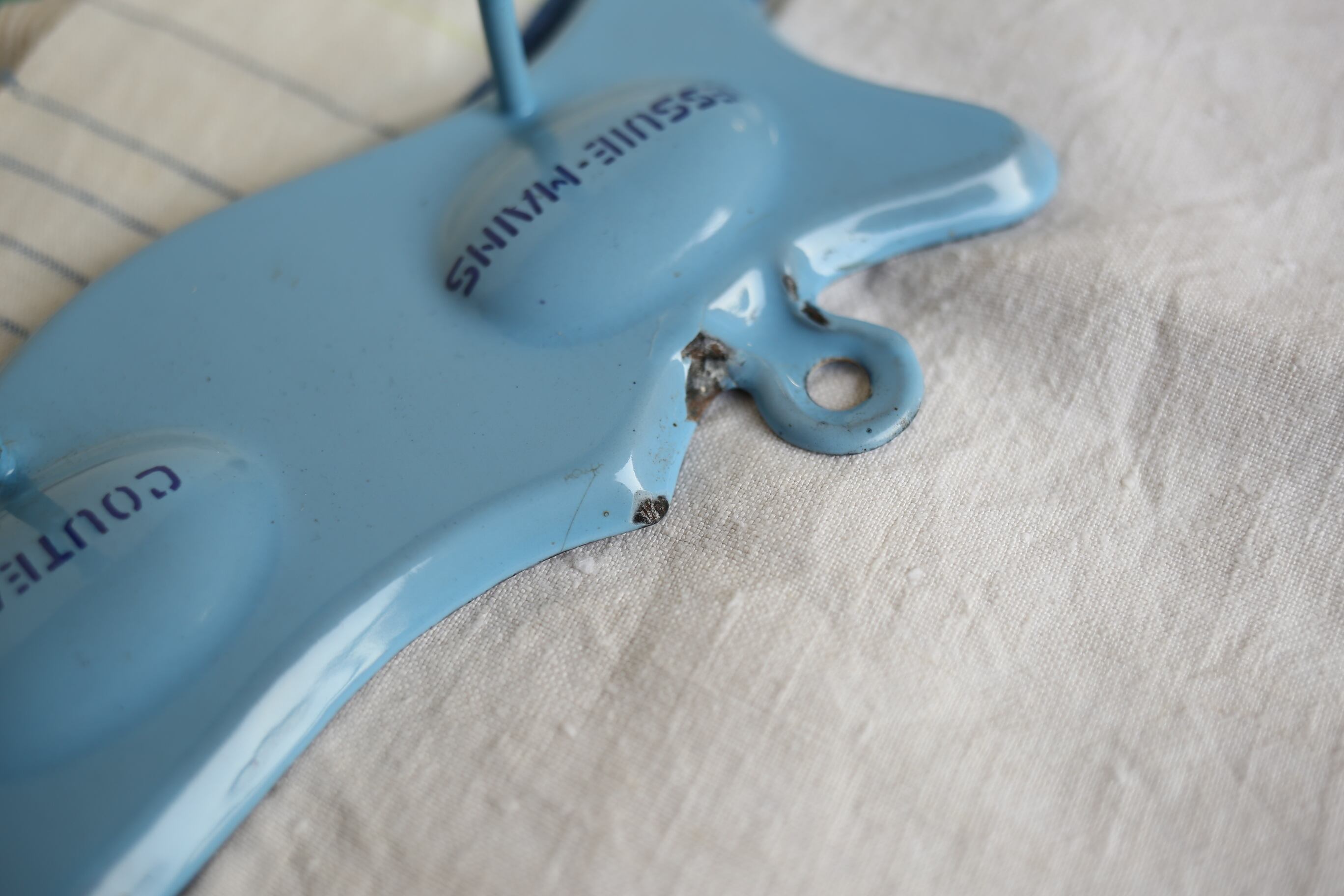 フランス アンティーク ヴィンテージ トーションフック ホーロー製 ブルー N-01511