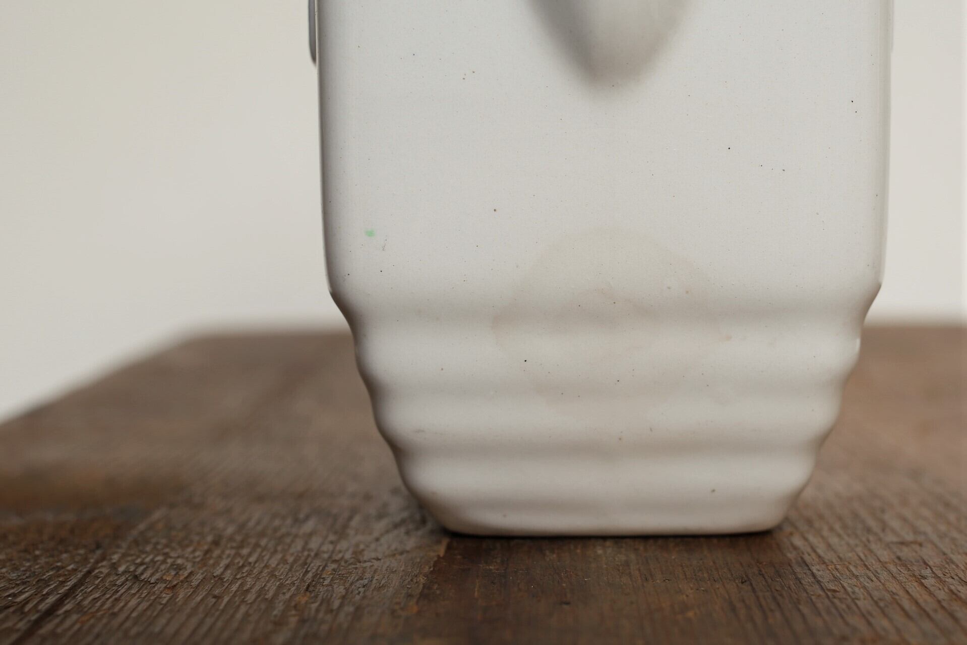 注ぎ口の下の方に内側の釉薬がかかっていない箇所からのシミがあります。