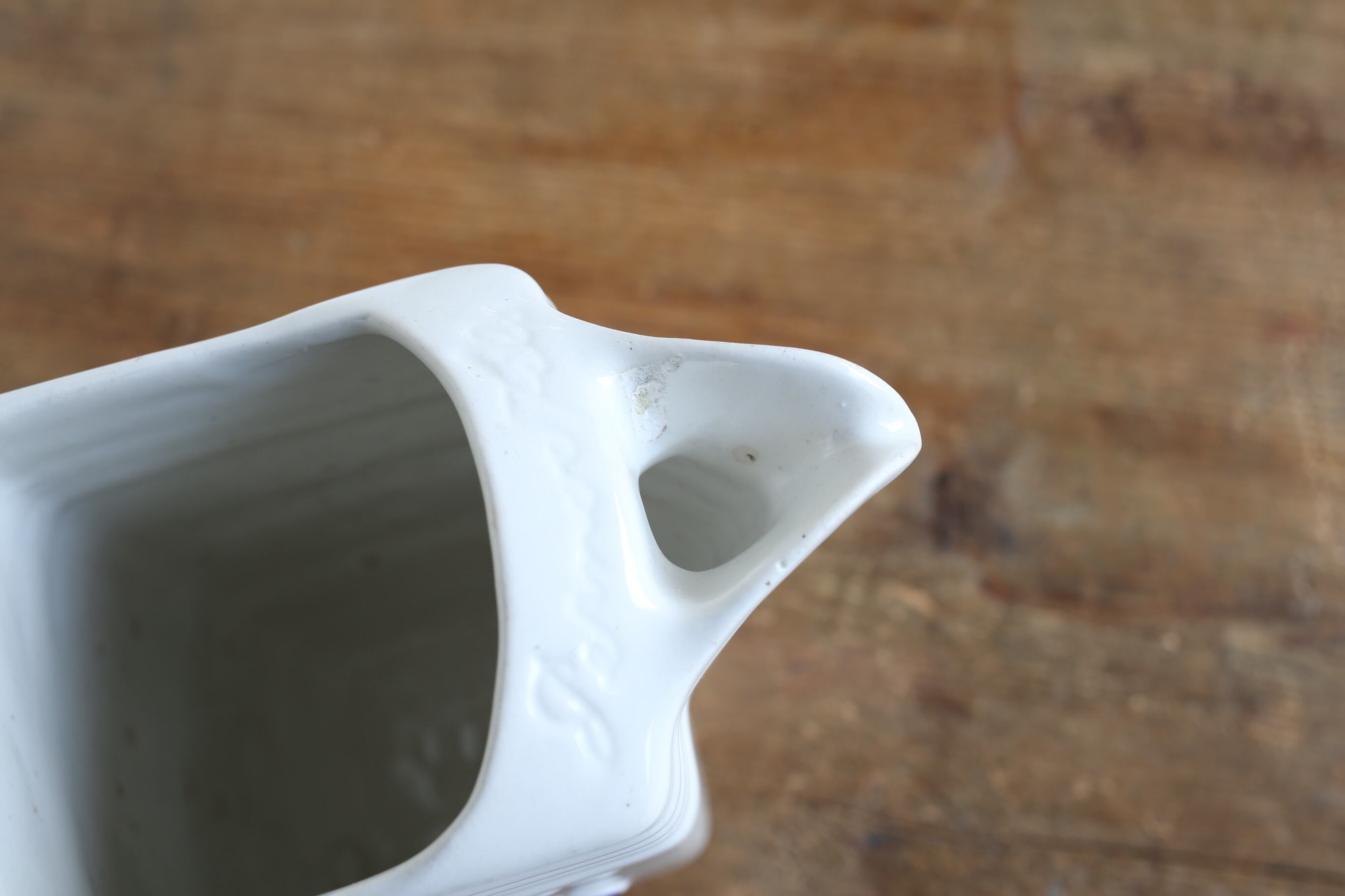 注ぎ口の付け根辺りに釉薬の剥げ、カケがあります。
