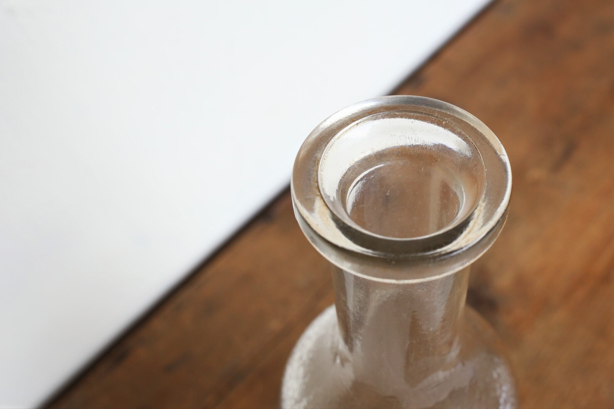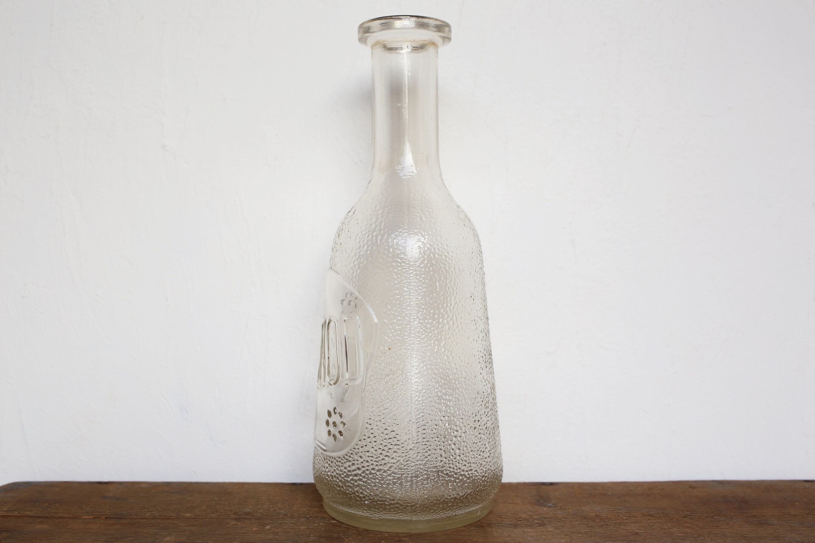 あまり見かけることのないカラフですが、ロゴやデザインが素敵で、やや黄色みがかった歪みや気泡のある古いガラスもとても雰囲気があります。