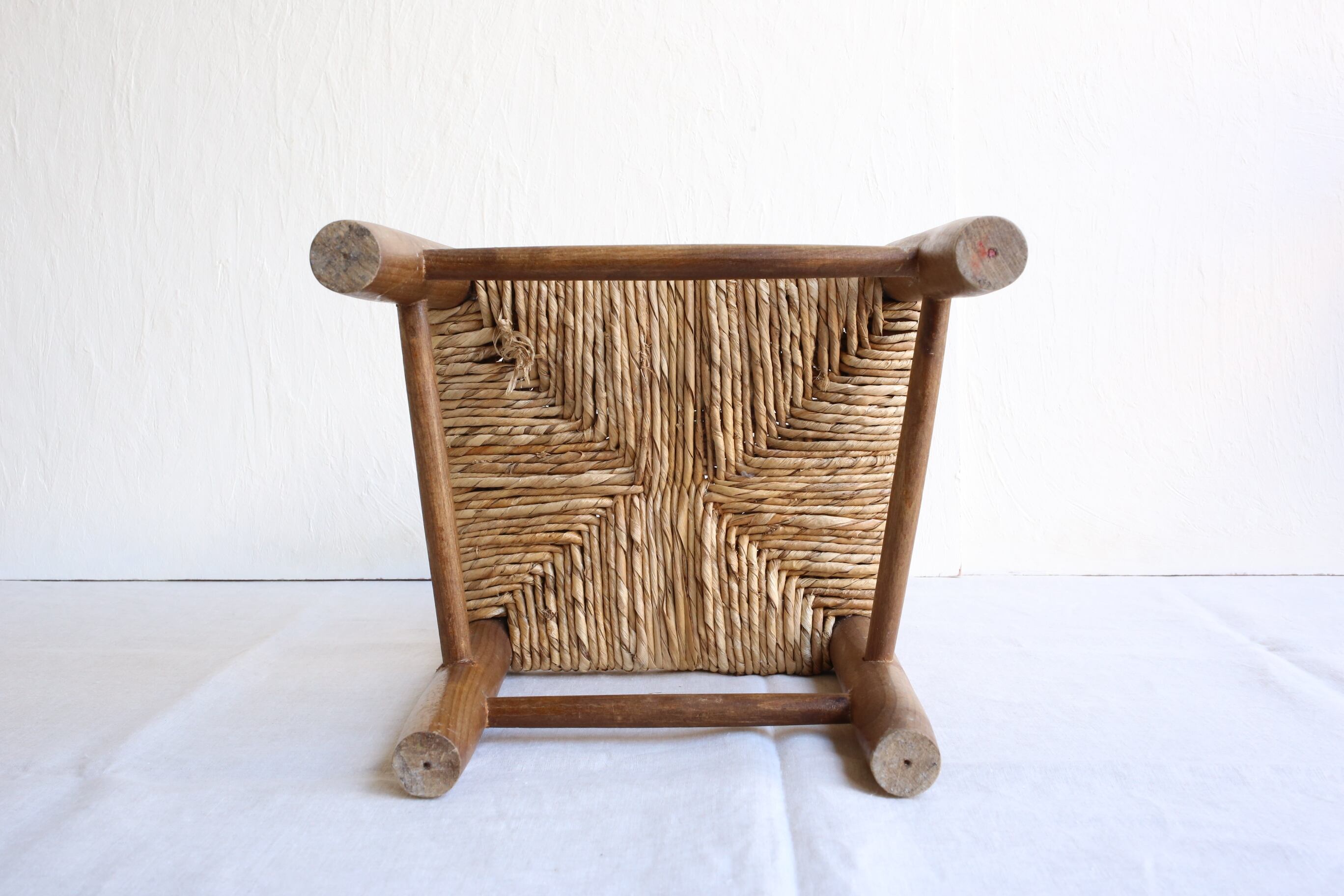 古いものなので座面の編み込みの毛羽立ち、木にキズやわずかにペイント移りもありますが、全体的は良い状態で長い年月をか経てきた風合いがより素敵な雰囲気を醸し出しています。