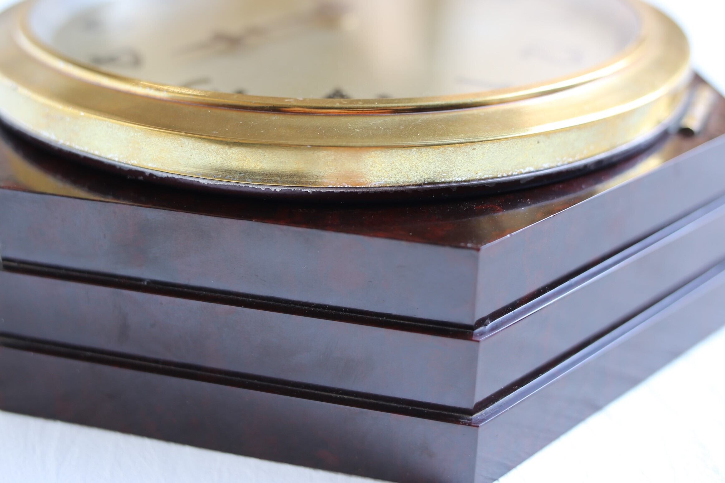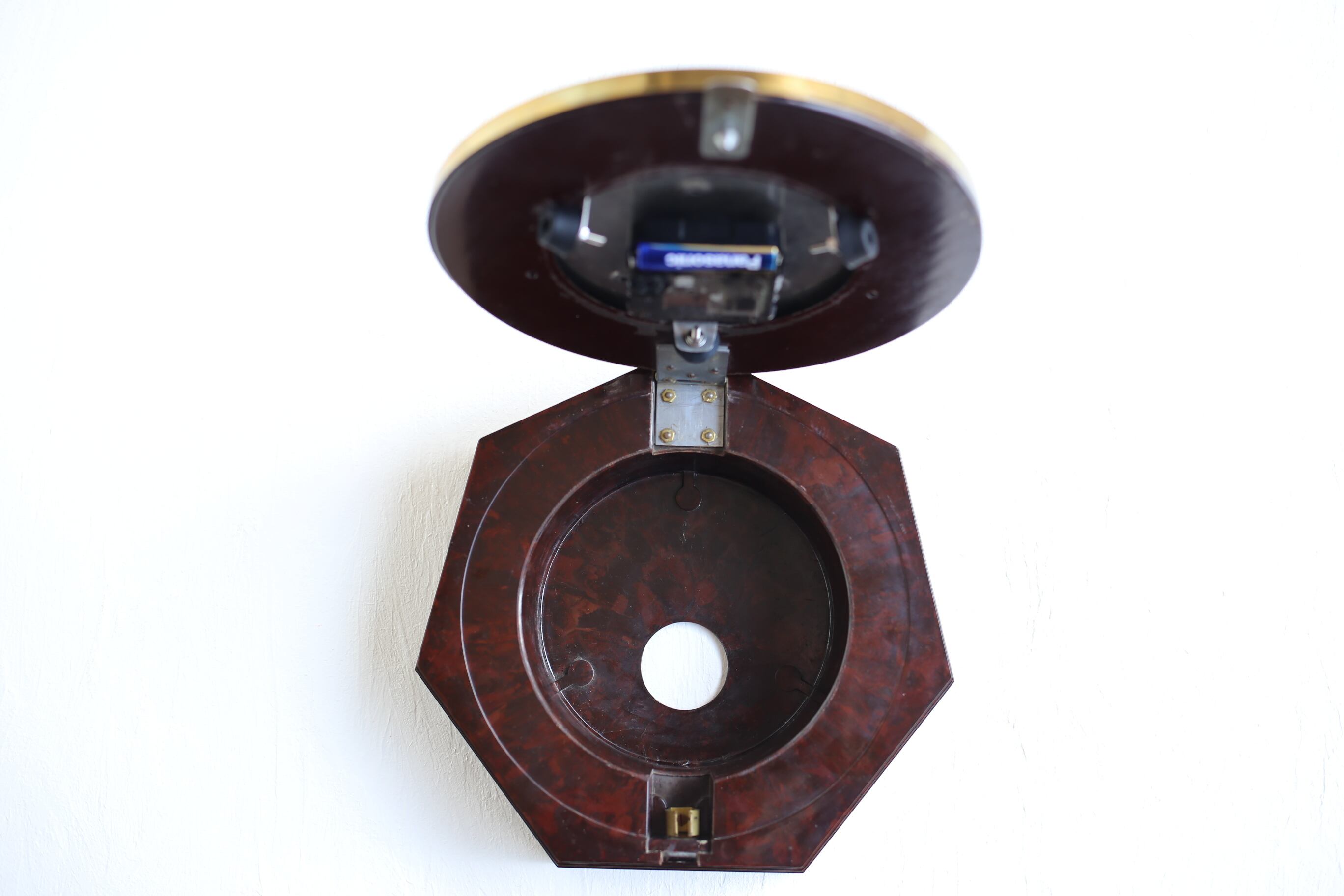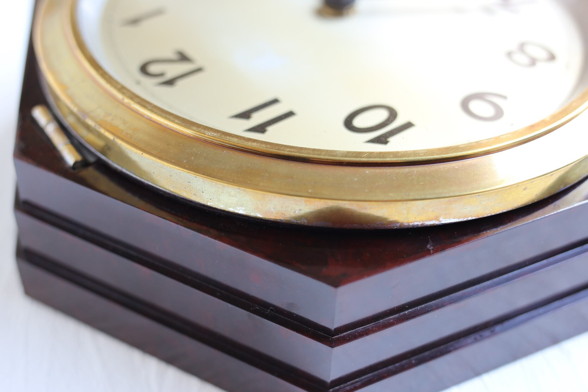 厚みのある7角形のベークライトのボディにゴールドで縁取られた文字盤の素敵な壁掛け時計です。