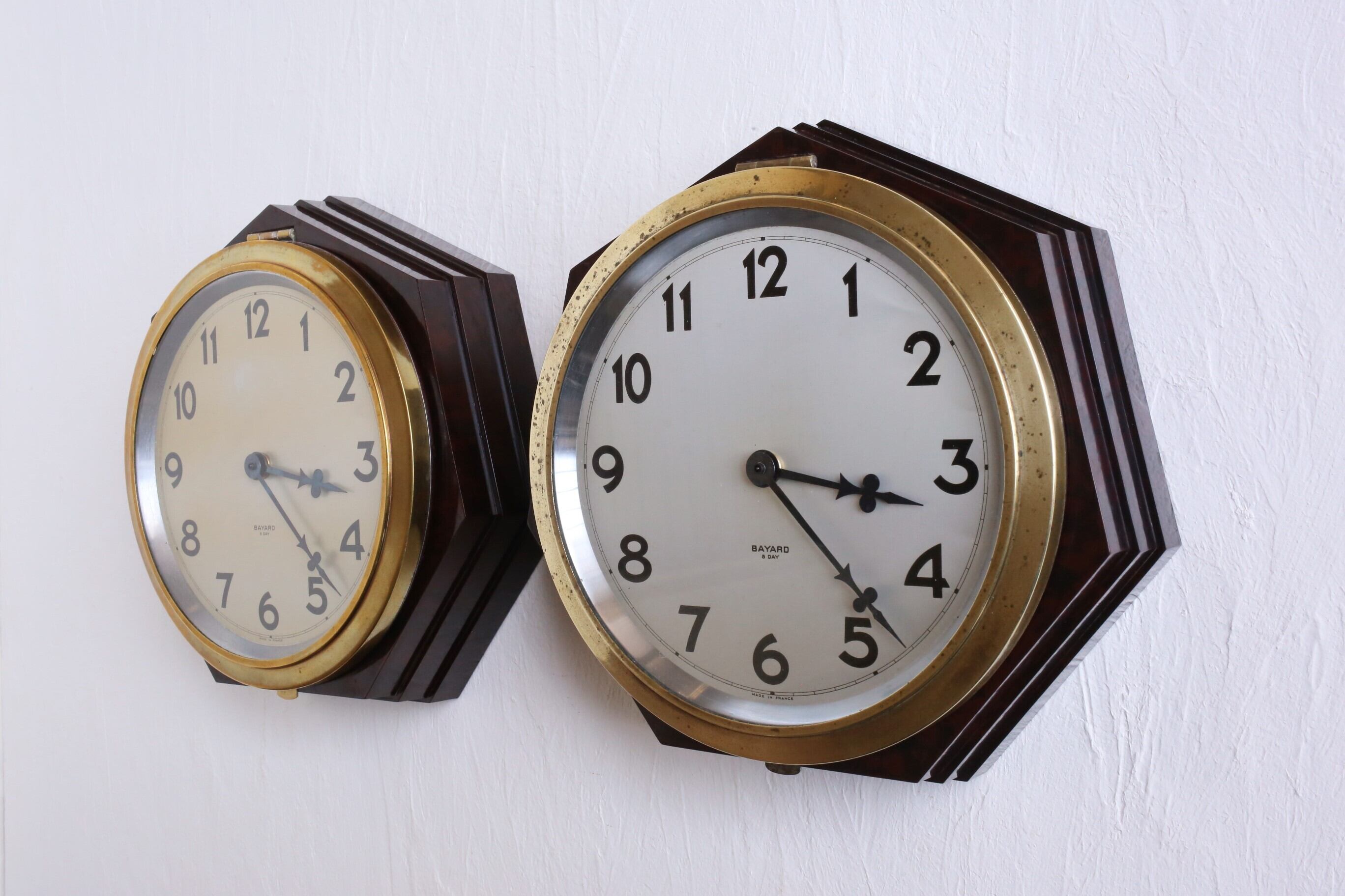 フランス アンティーク ヴィンテージ BAYARD ベークライト 壁掛け時計 ゴールド文字盤 (電池式 クォーツ交換済) N-02557