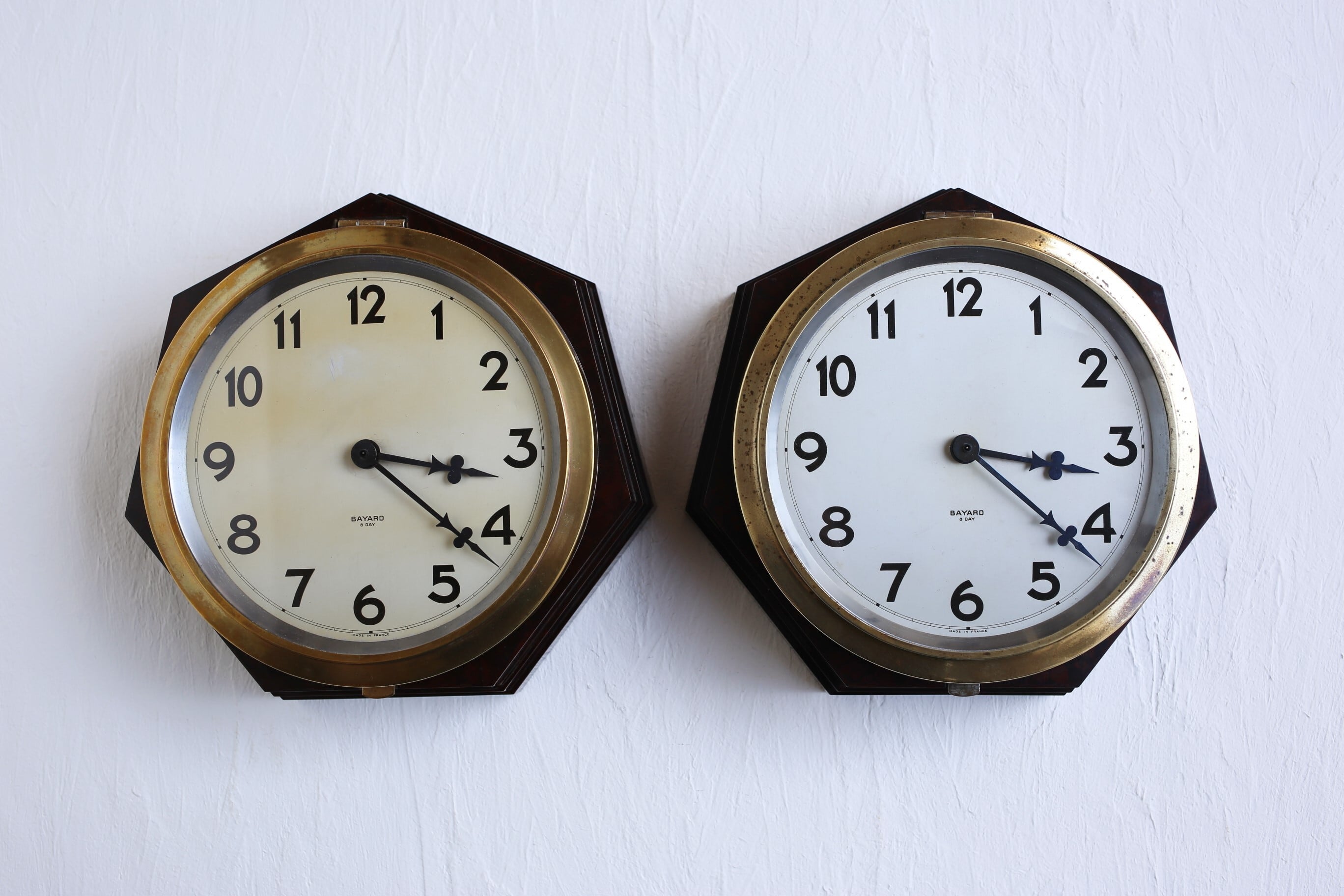 フランス アンティーク ヴィンテージ BAYARD ベークライト 壁掛け時計 シルバー文字盤 (電池式 クォーツ交換済) N-02449
