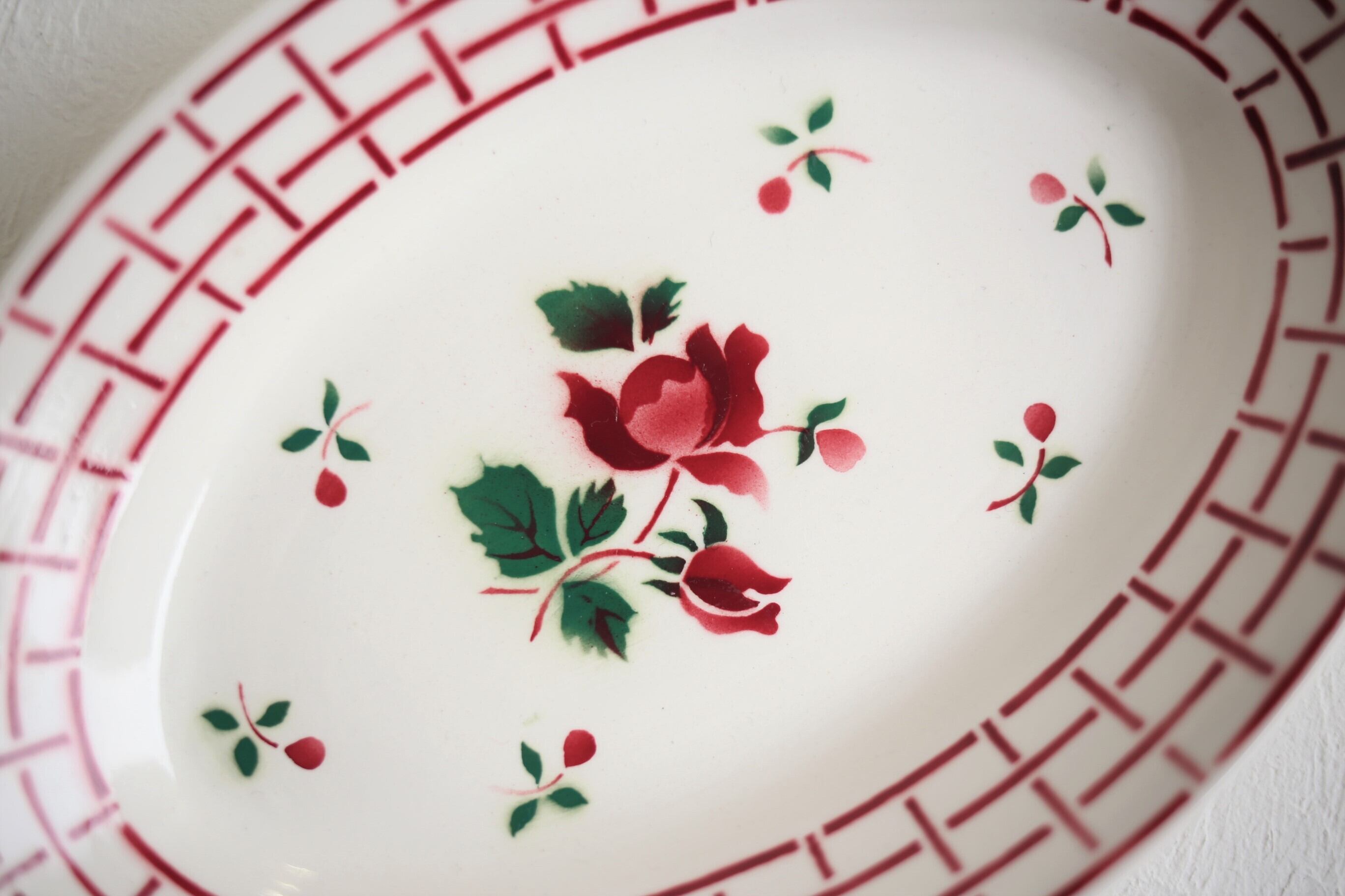 フランス アンティーク ヴィンテージ DIGOIN SARREGUEMINES サルグミンヌ オーバル皿『ROSA』N-00843
