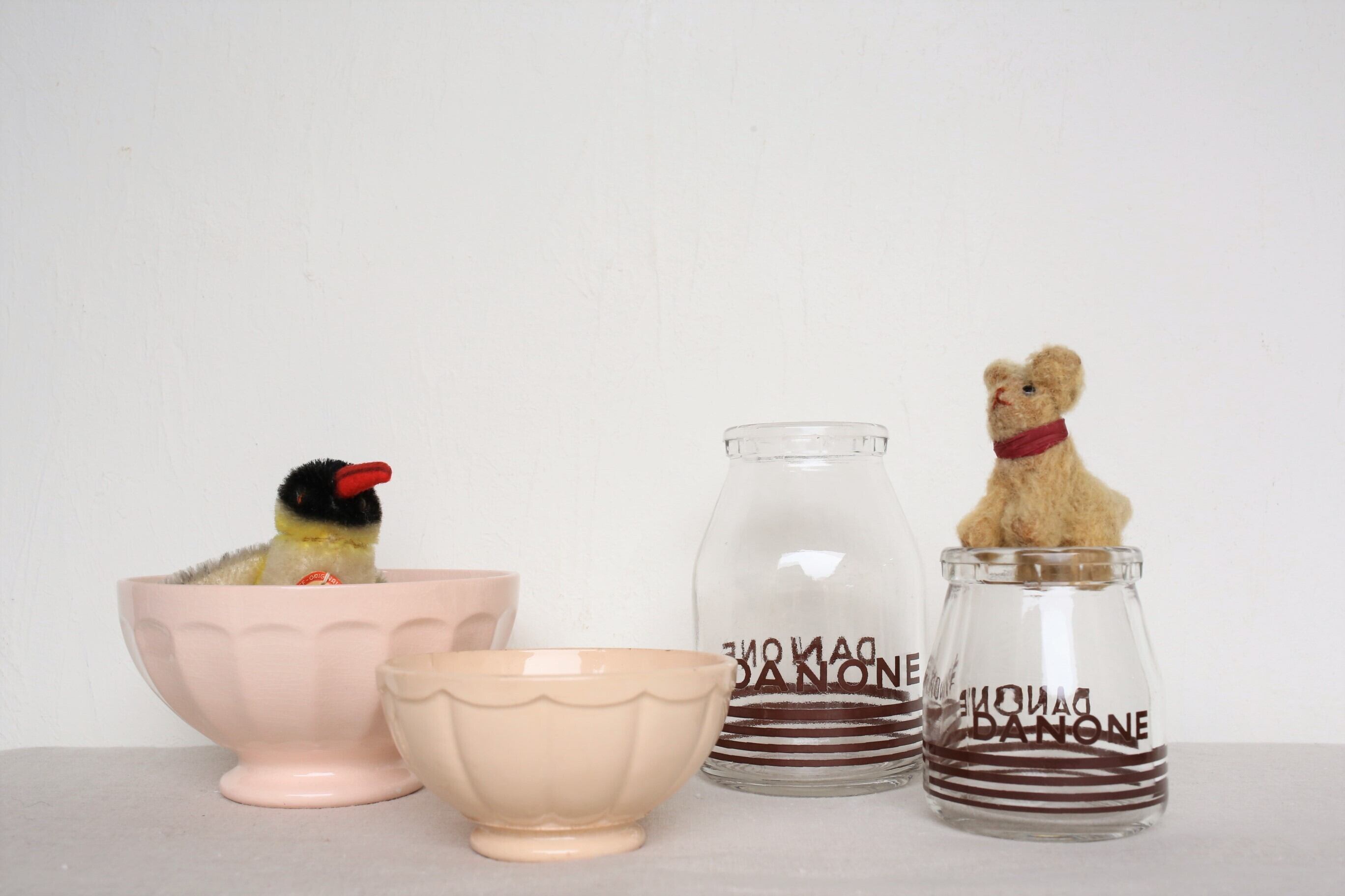 フランス アンティーク 『DANONE』 ガラスビン ヨーグルトポット(小) N-00515