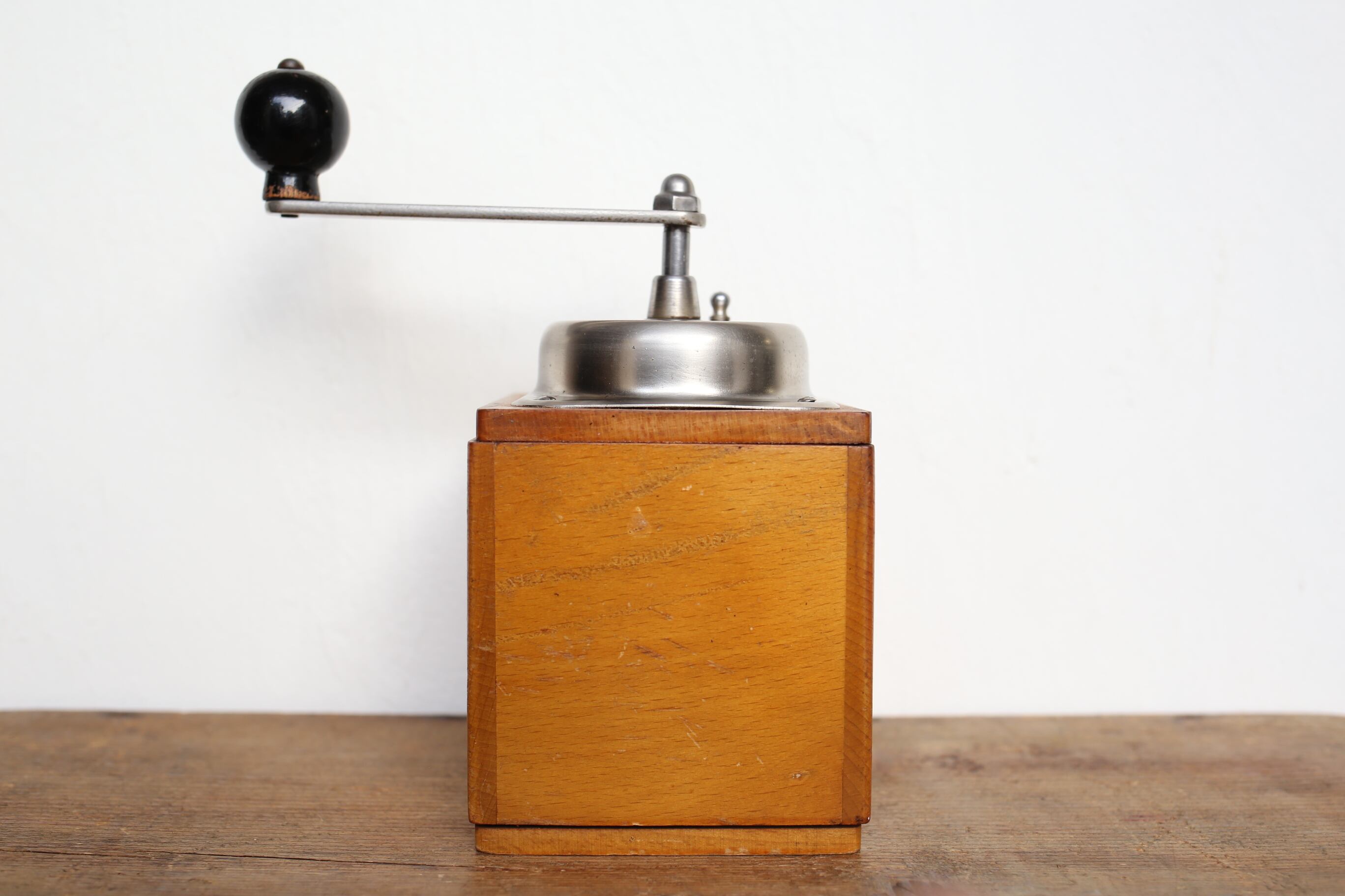 ヴィンテージコーヒーミルの王道のデザインにやや小ぶりのサイズ、使い込まれた木の雰囲気がとても良いです。