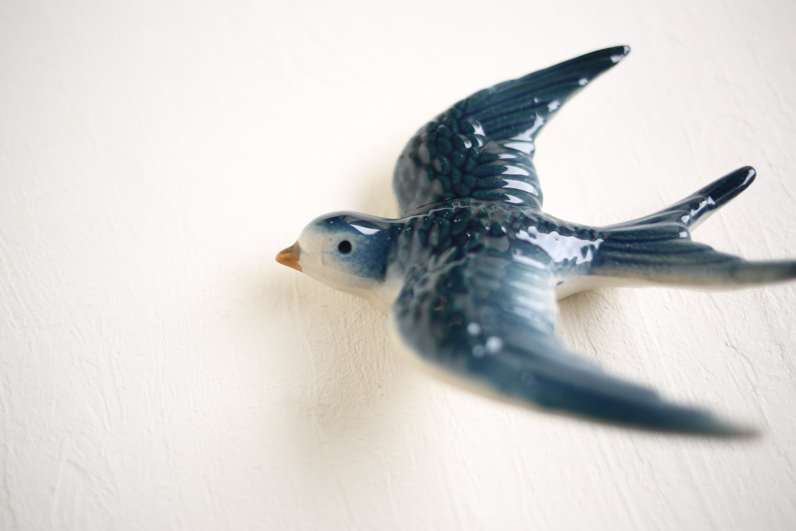 フランス アンティーク ヴィンテージ 陶器製 ツバメ 壁掛け ブルー N-02812