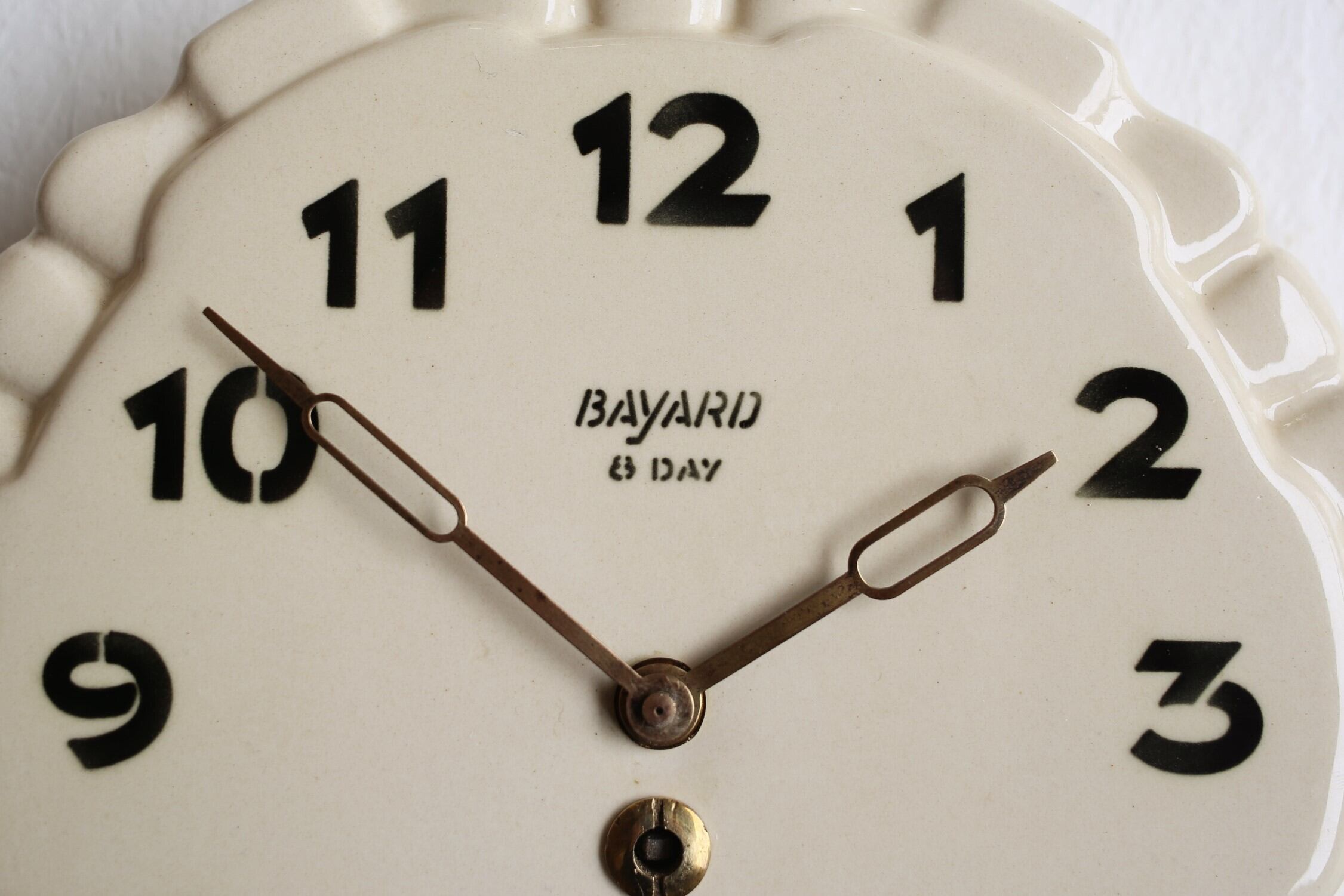 フランス アンティーク ヴィンテージ BAYARD 陶器製 壁掛け時計 (電池式 クォーツ交換済) N-00490