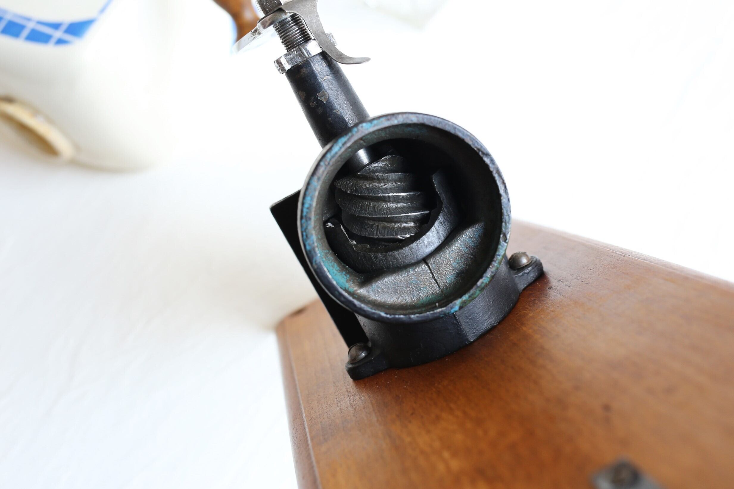 フランス アンティーク ヴィンテージ Peugeot 壁掛けコーヒーミル ブルー(陶器:サルグミンヌ製) N-00164