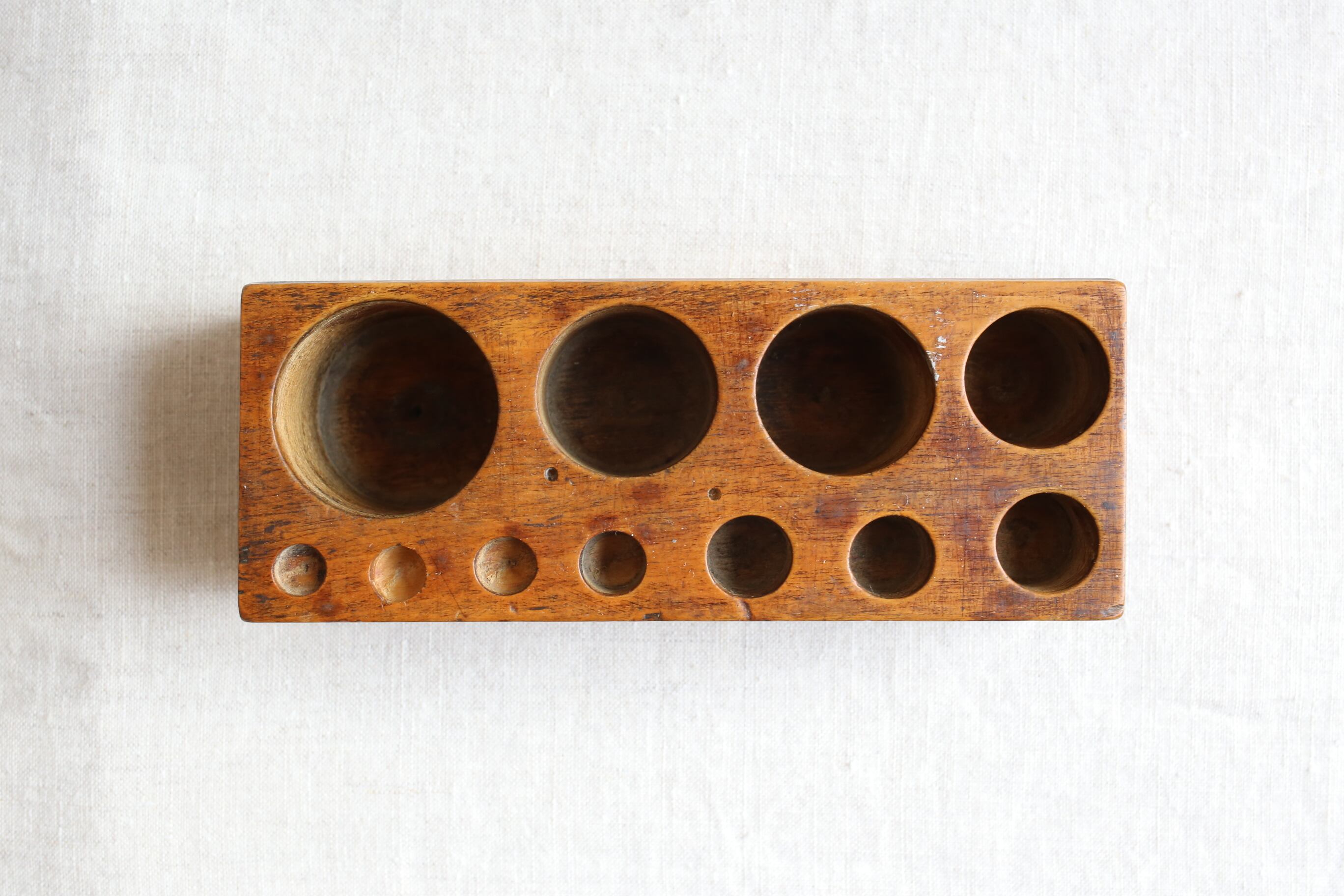 分銅はケースに対して一番小さいサイズの一個が足りていませんが、200g、100g×2、50g、20g、10g×2、5g、2g×2の合計10個あります。