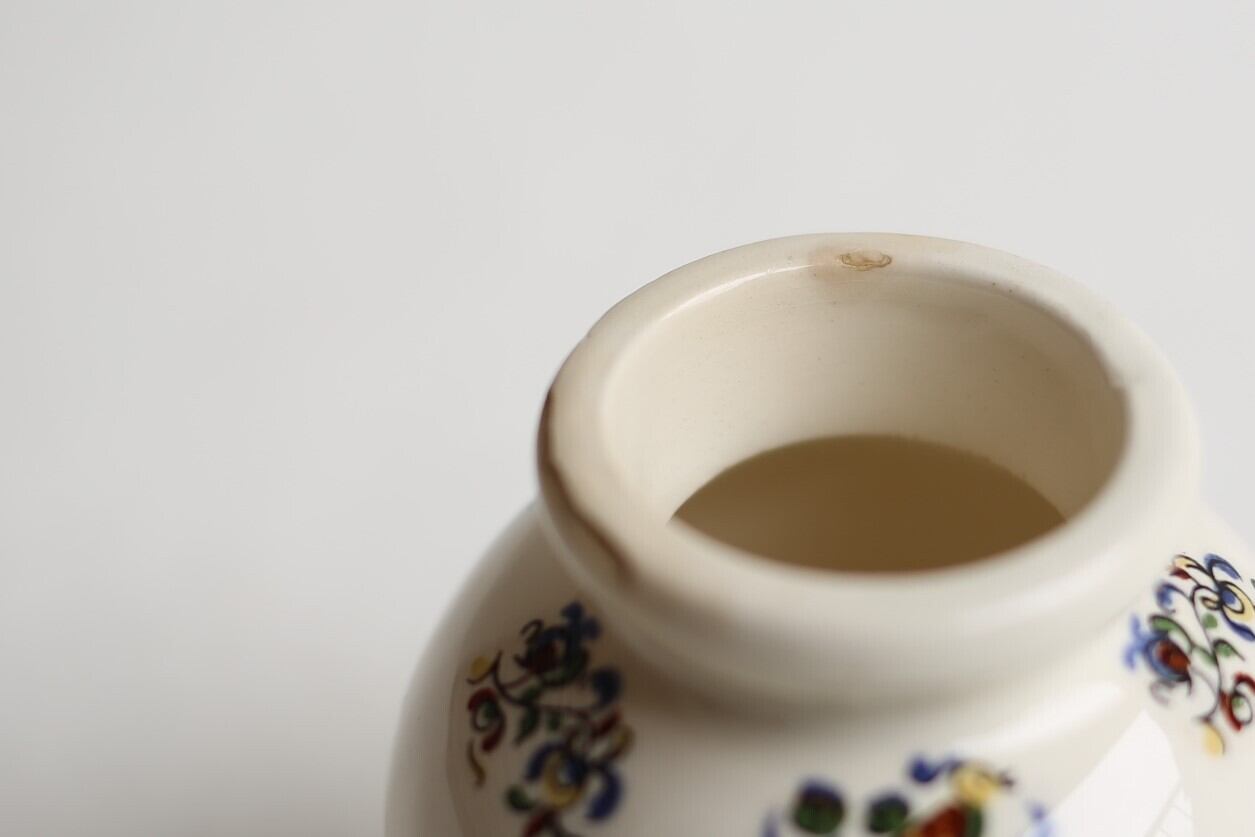 口の縁に染みとカケ、底の縁に微小なチップ、製造時からのペイントのムラや色移りなどありますが、全体的には釉薬のツヤも残っていて綺麗です。