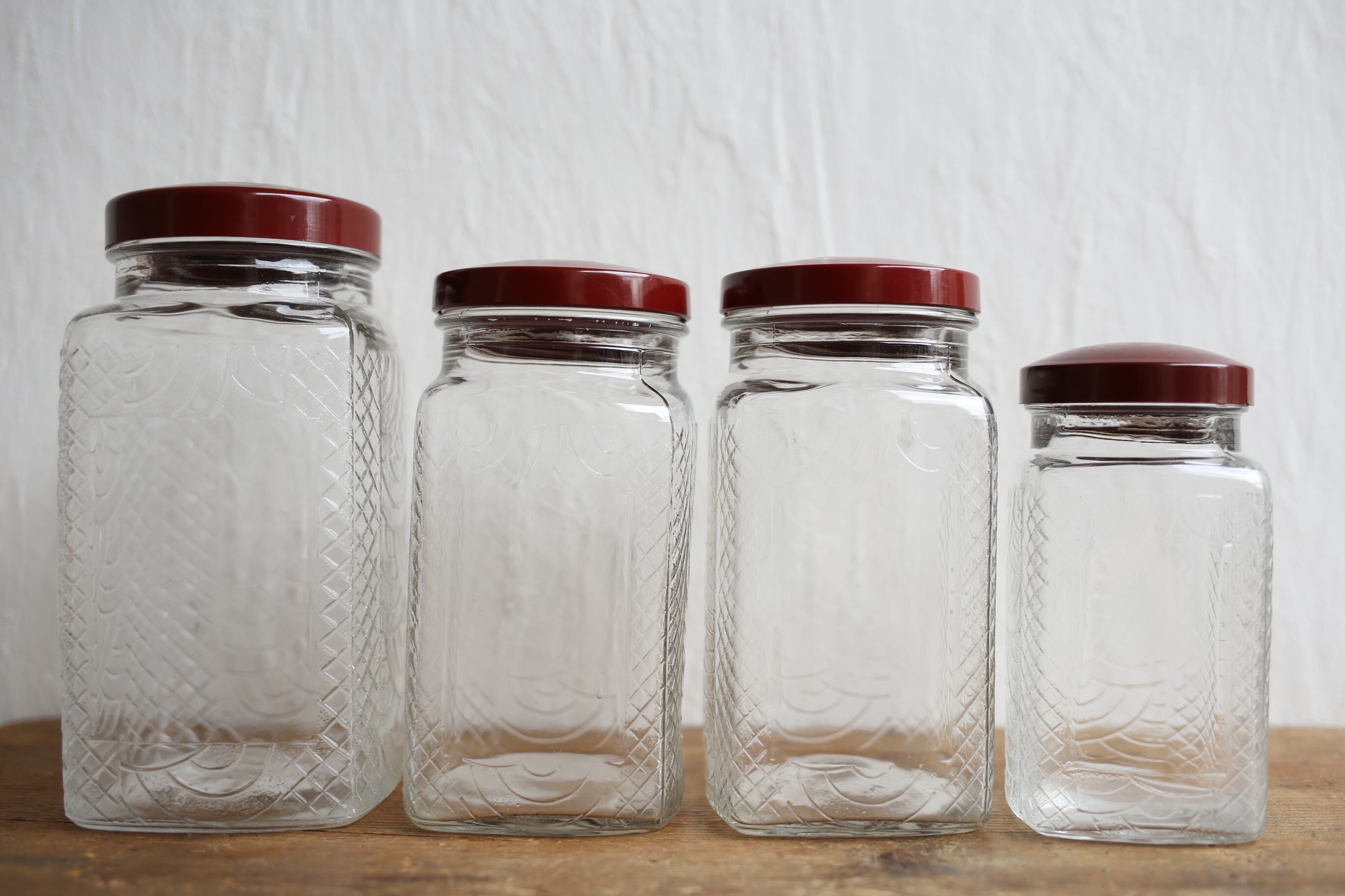 フランス アンティーク ヴィンテージ ベークライト製蓋付き ガラスのキャニスター(中) N-00604-3a