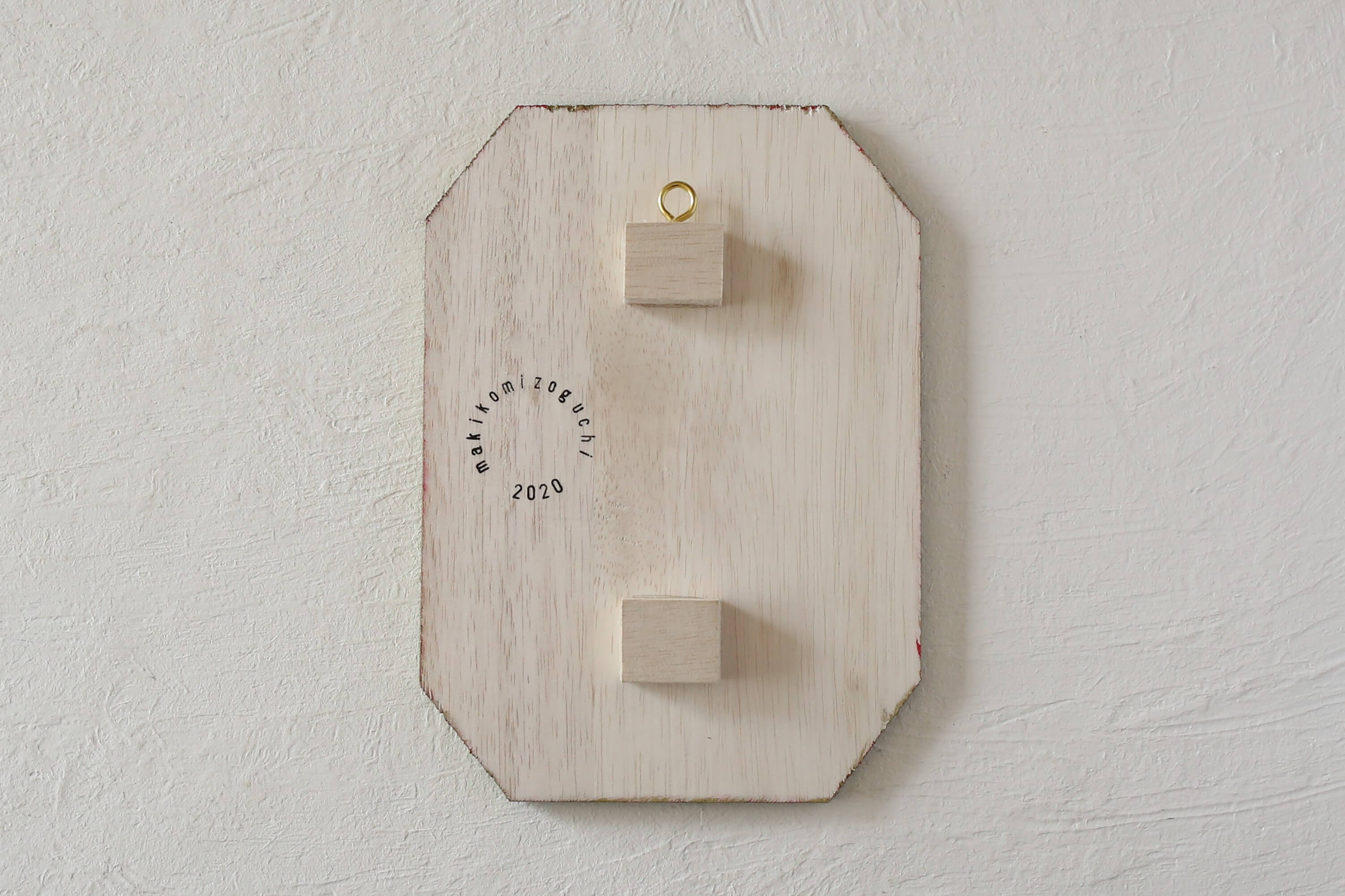 裏面に木片を付けているのでオブジェが壁から少し浮いているように見えます。