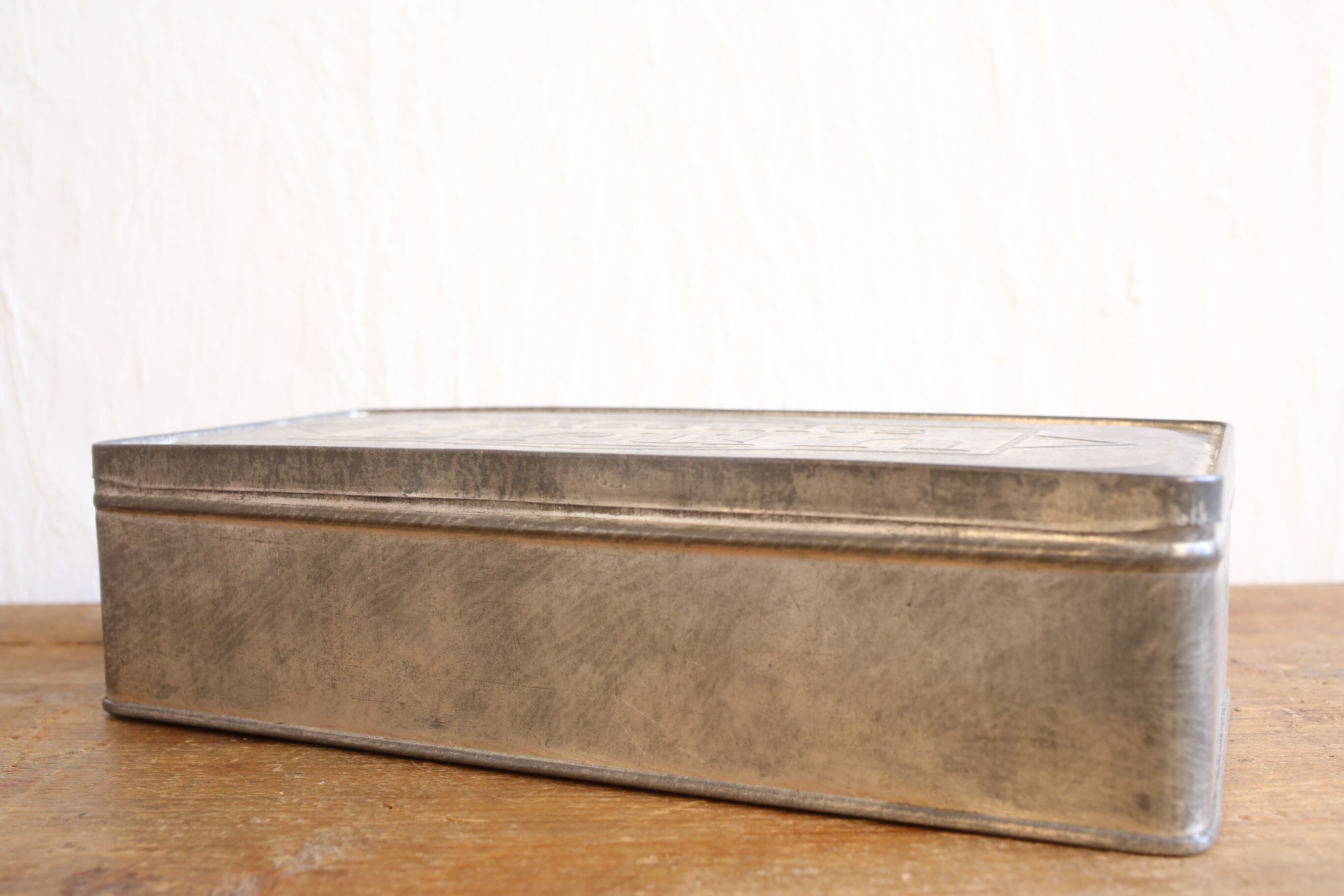 こちらはオリジナルのペイントが剥がれた状態のものですが、ロゴのエンボスや古いTIN缶ならではの風合いが素敵です。