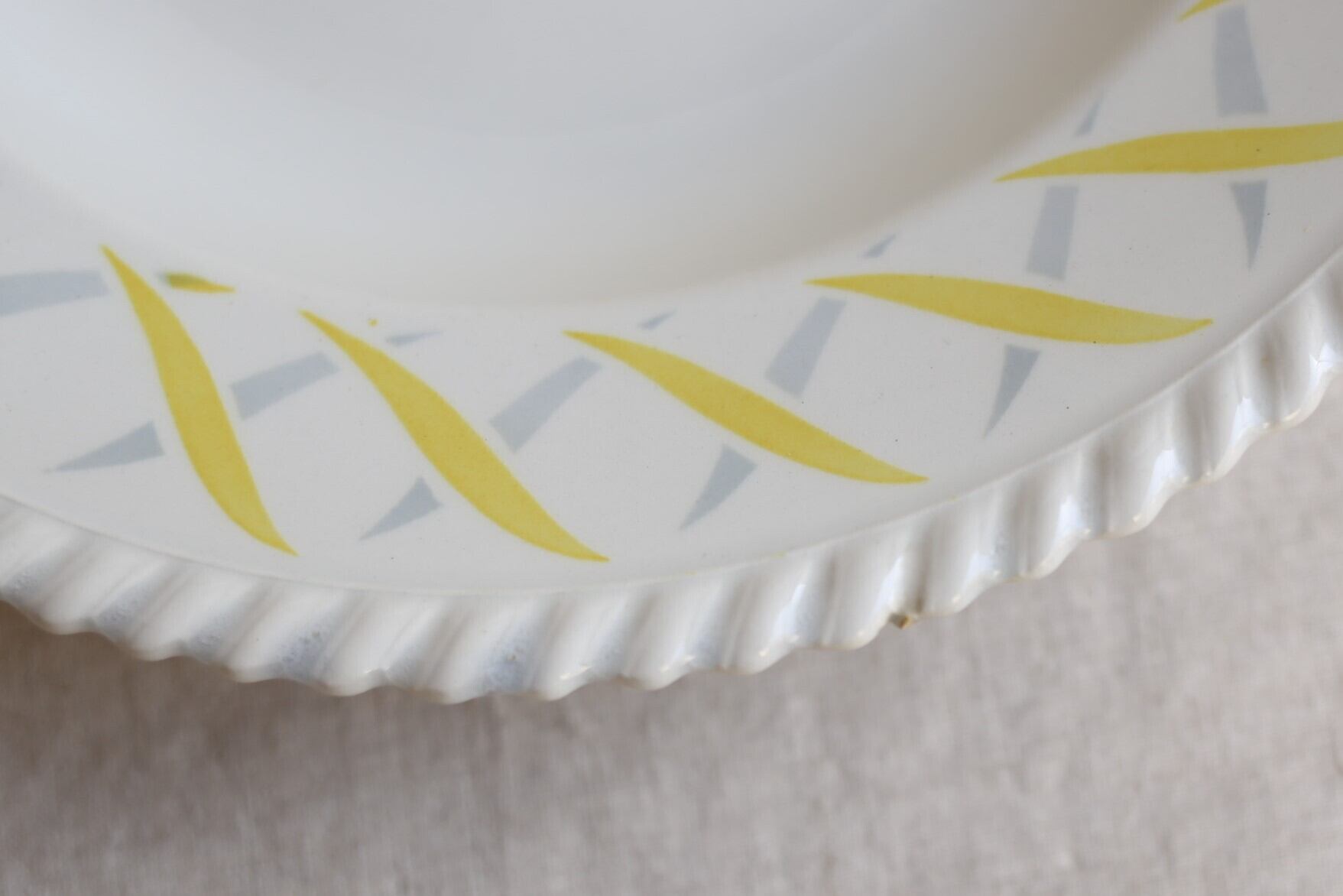 フランス アンティーク ヴィンテージ Badonviller バドンヴィレー フリル 深皿 グレー×イエロー N-00599