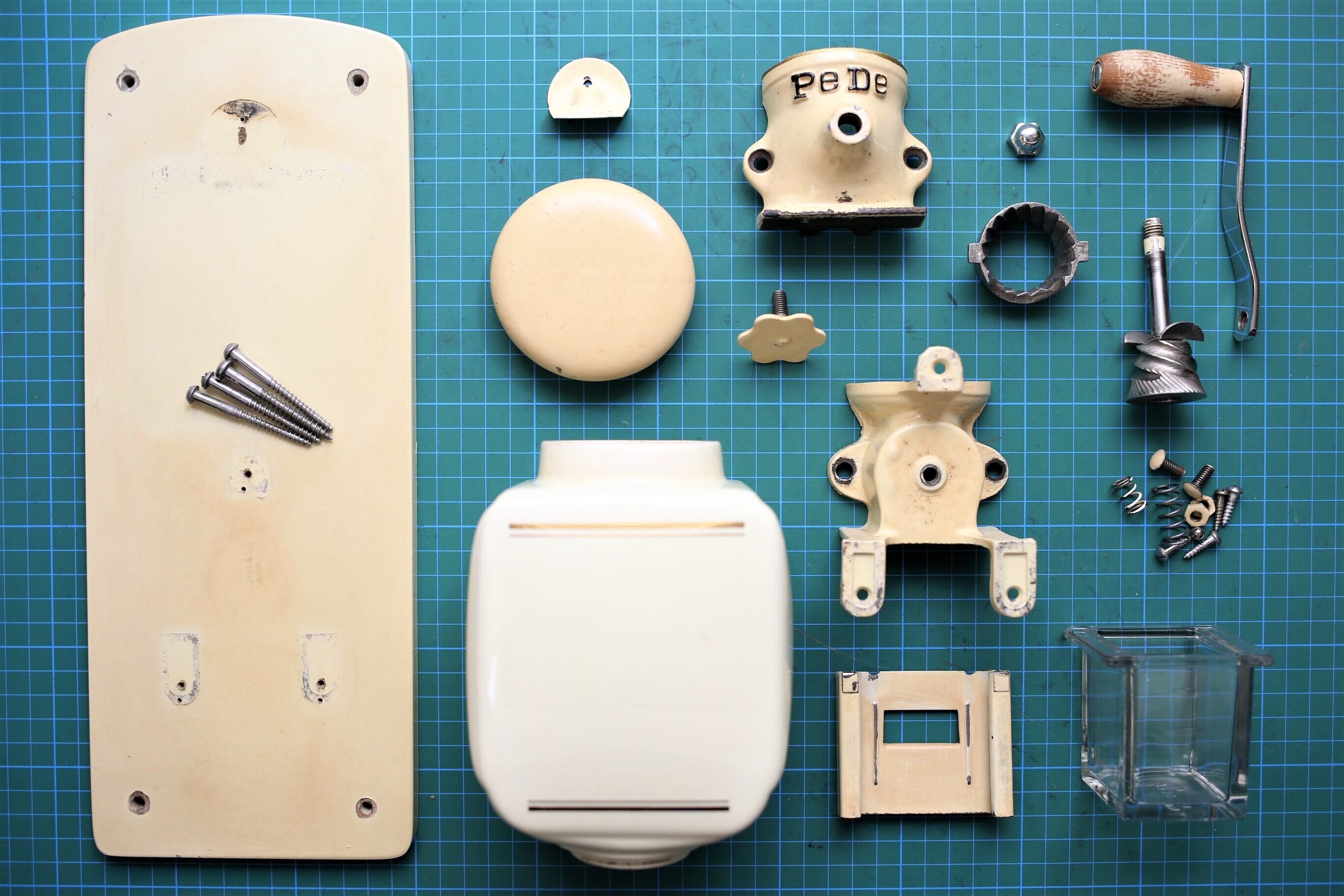 ドイツ アンティーク ヴィンテージ PeDe ( Peter Dienes ) 壁掛けコーヒーミル アイボリー×ゴールド N-01125