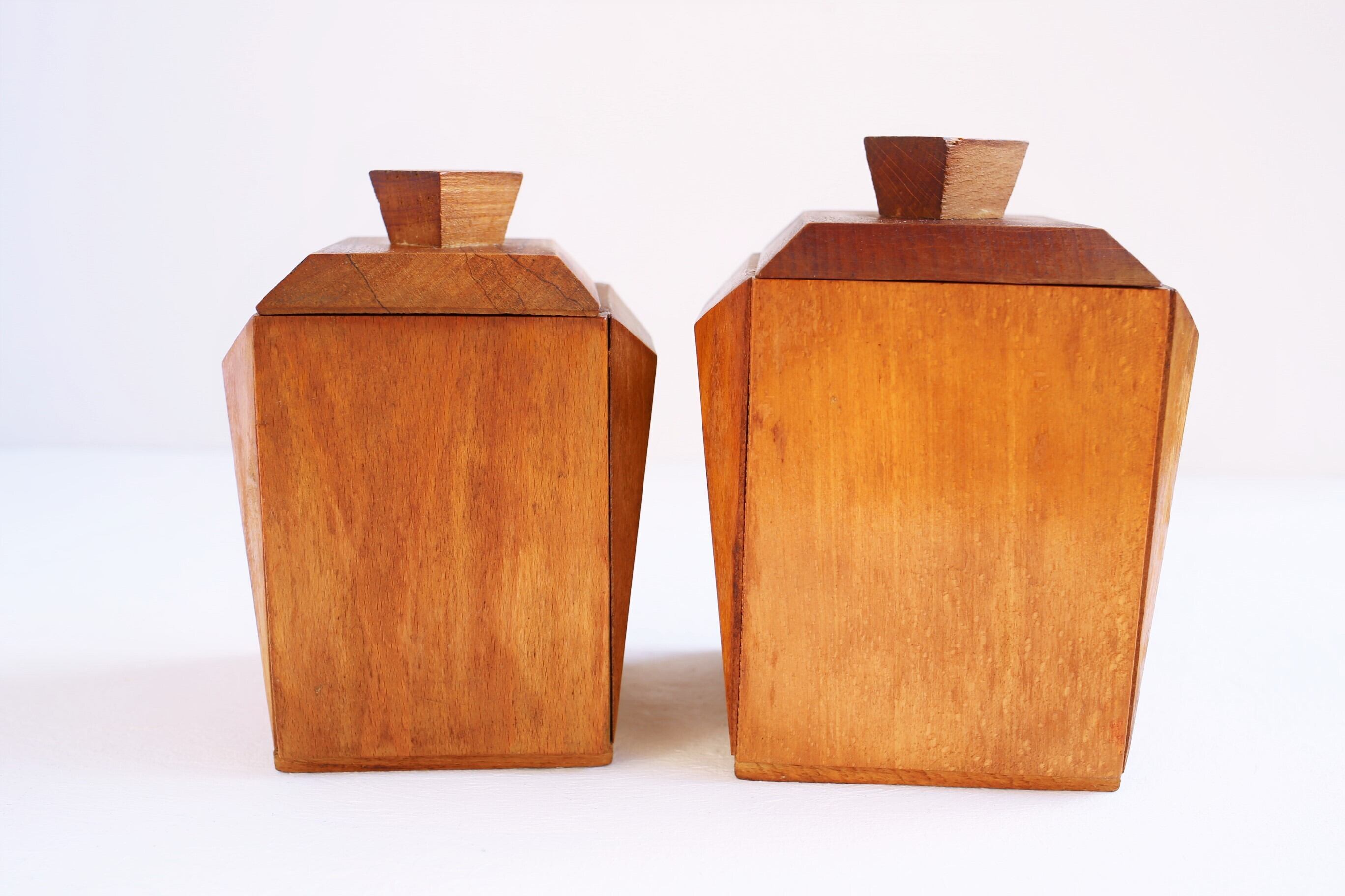 木製のダミエ柄のキャニスターは長年探していましたが、今まででこのセット以外には出会ったことがありません。