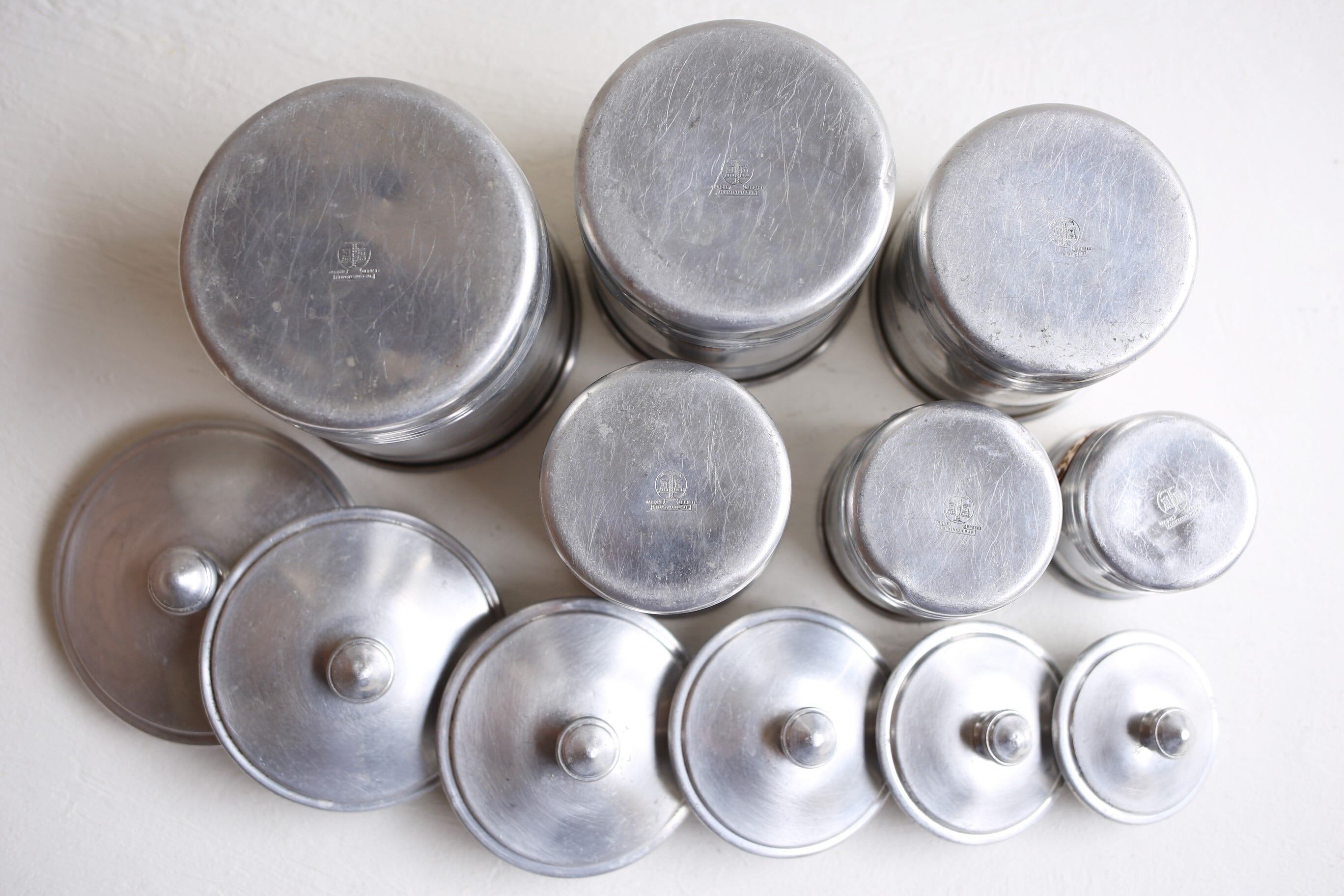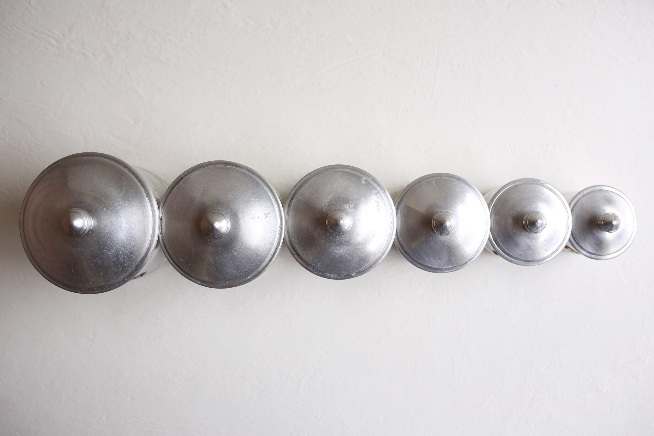 フランス アンティーク ヴィンテージ アルミ製 キャニスター 6個セット N-00069