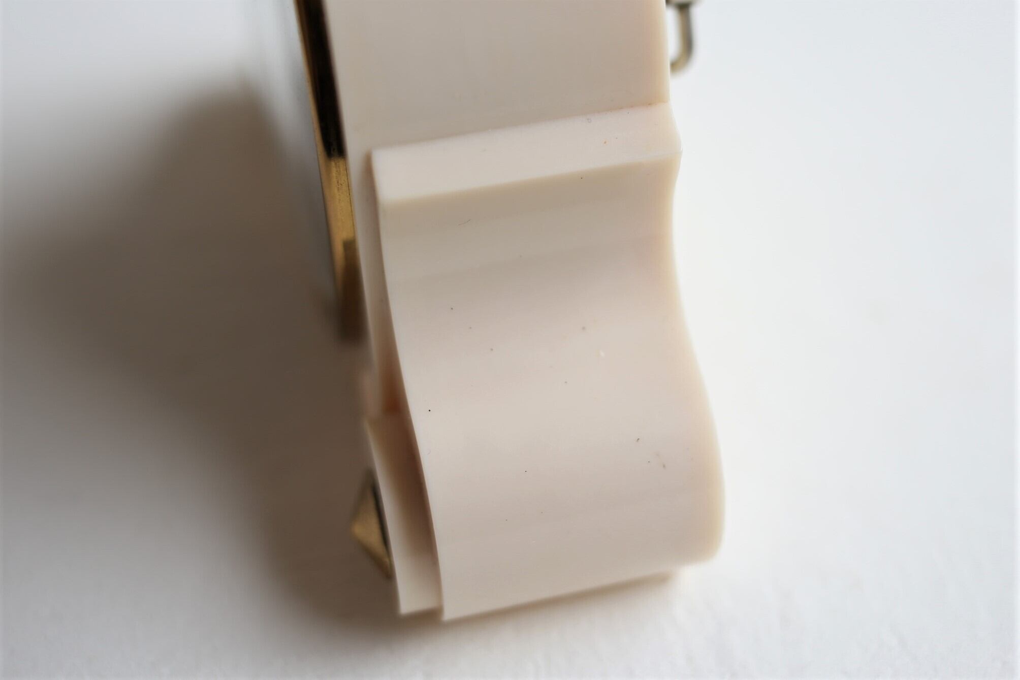 印象的なデザインとアイボリーのベークライトの質感が良い素敵な目覚まし時計です。