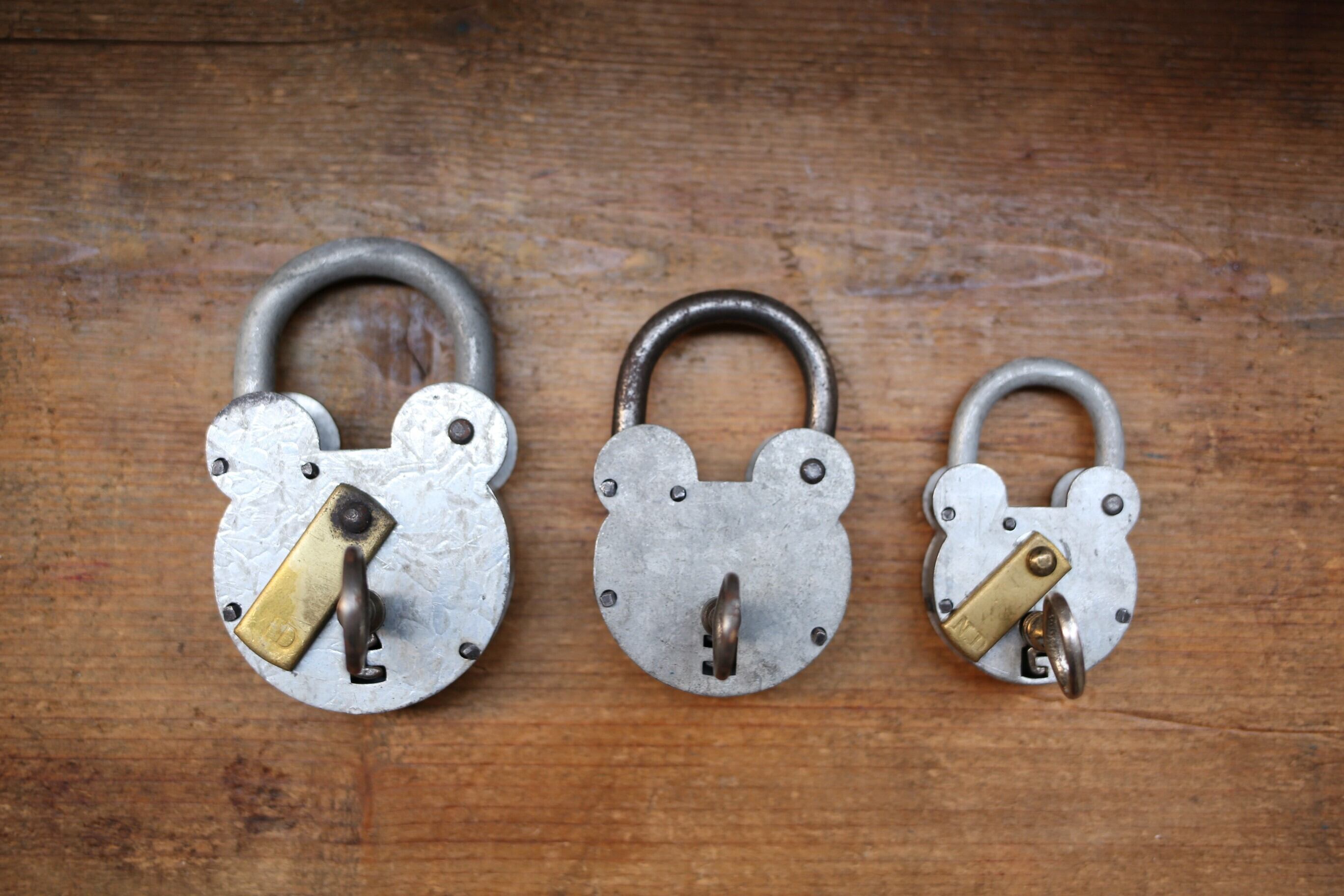 フランス アンティーク ヴィンテージ クマ型 南京錠 パドロック(中)鍵1本付き N-00891