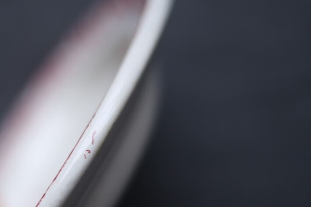 インクの溜まった箇所一点と製造時の色移り、わずかに薄いシミがありますが、ヒビやカケはなく全体に細かく入った貫入も素敵で全体的はとても良い状態です。