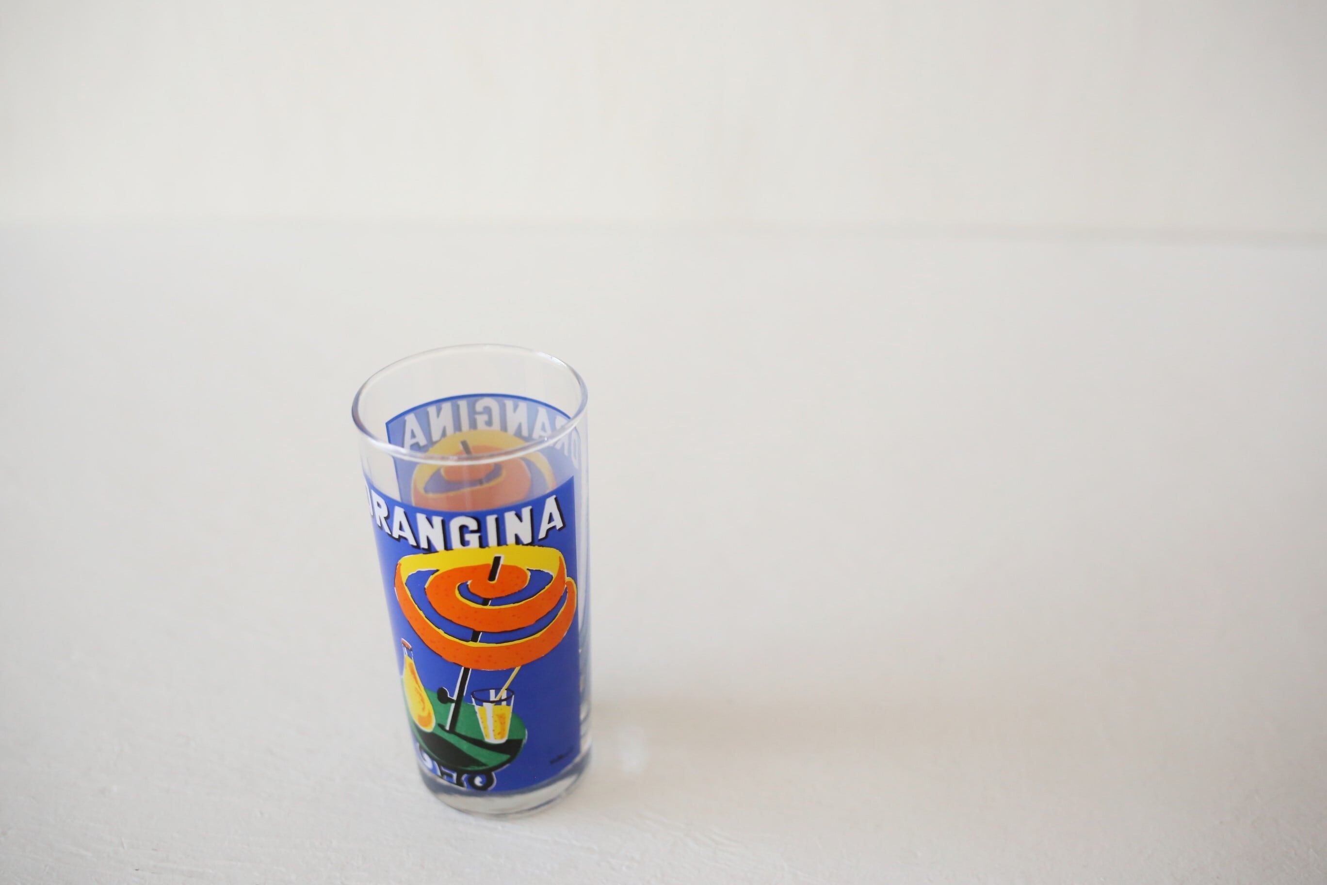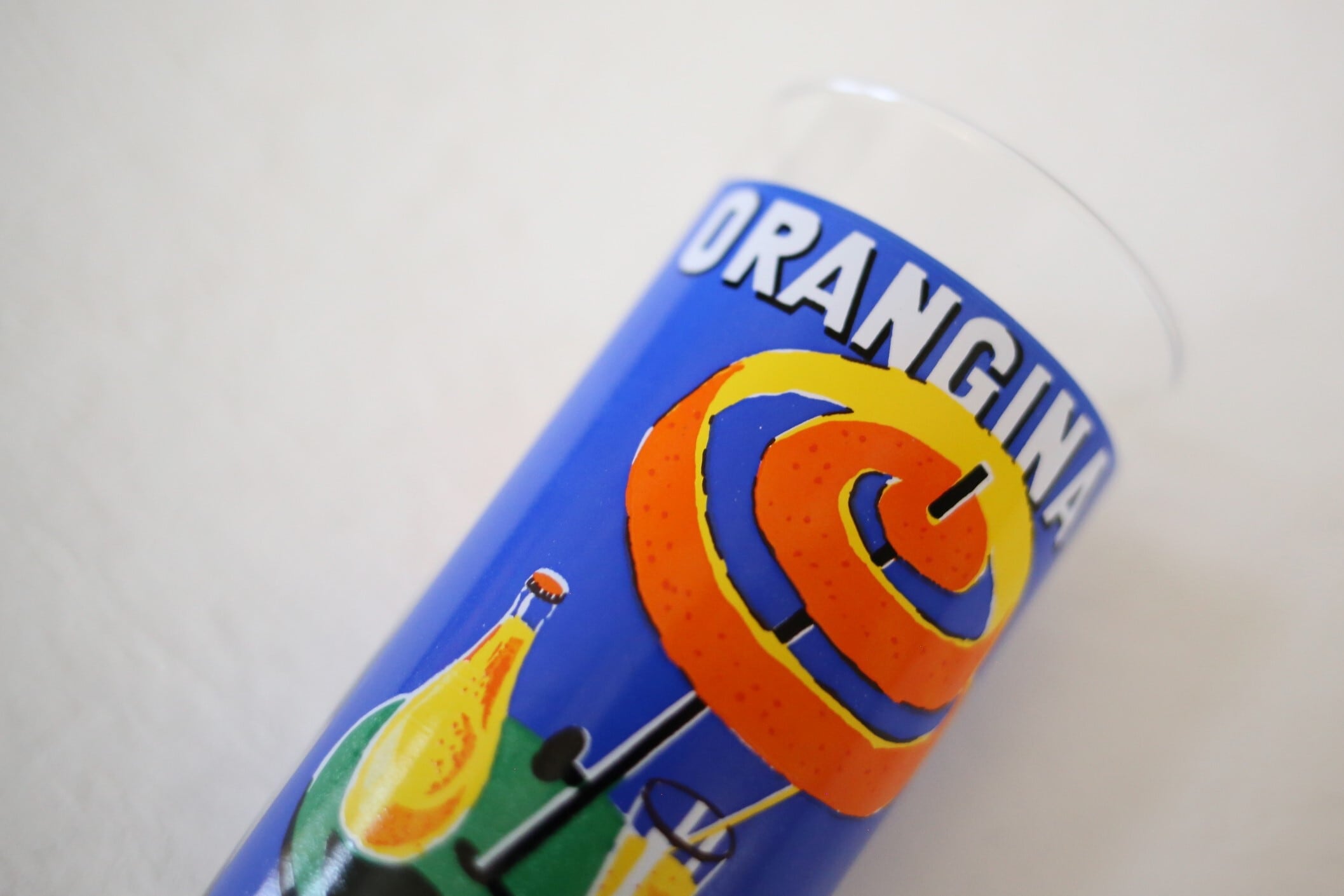 この高さのあるグラスは比較的珍しいですが、オランジーナらしいデザインが素敵です。