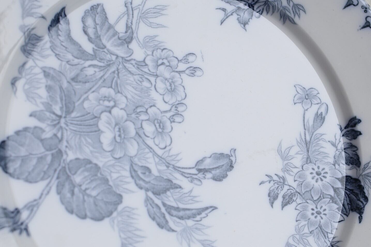 製造時のムラや縁の擦れと微小なチップ、わずかにカトラリー跡がありますが、目立つカケやヒビはなく、この時代のアンティークプレートとしてはとても良い状態です。