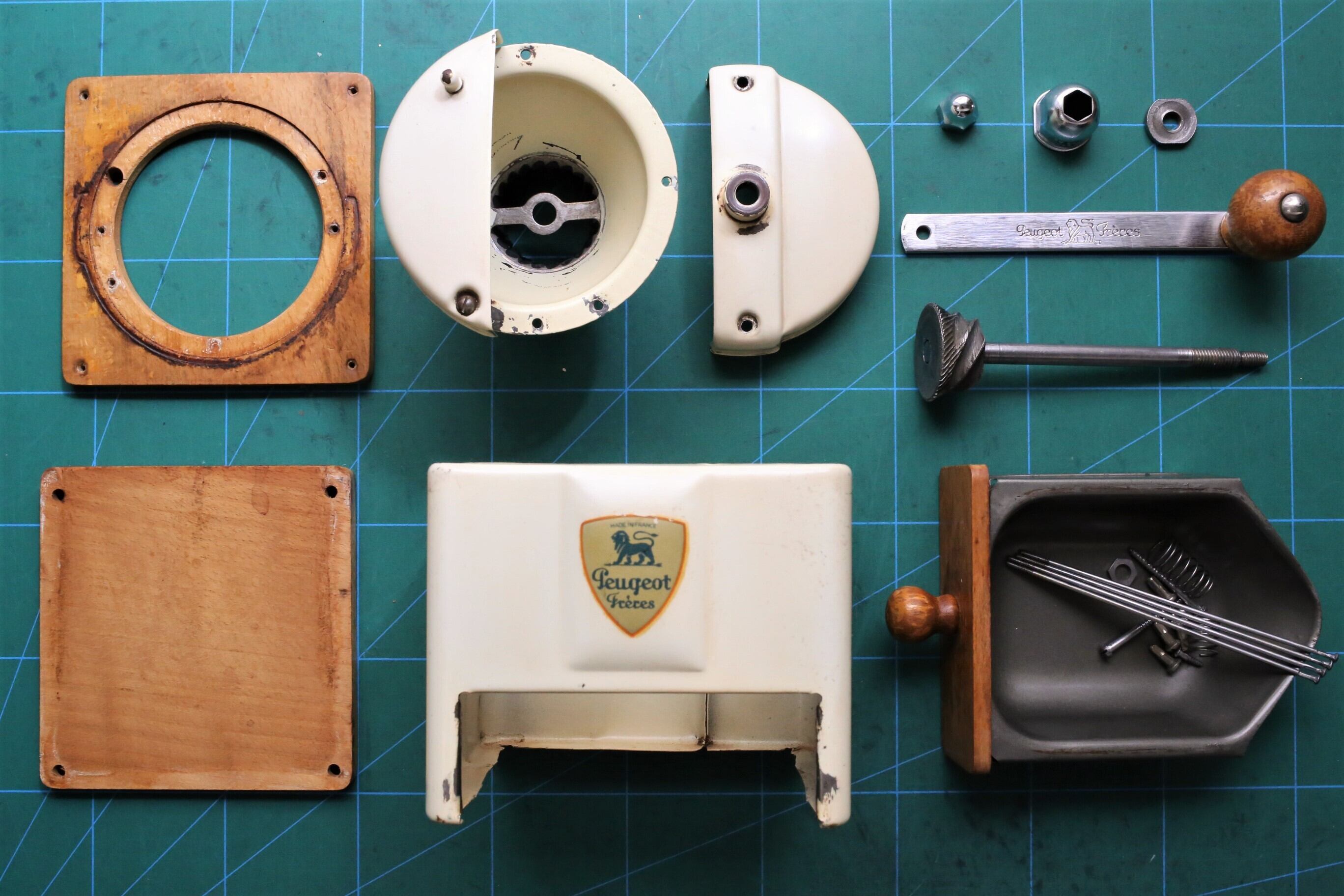 プジョーのコーヒーミルの中でも長年いろいろなモデルが作られた定番のデザインですが、実際に手にするとそのデザインと実用性の素晴らしさを再認識させられます。