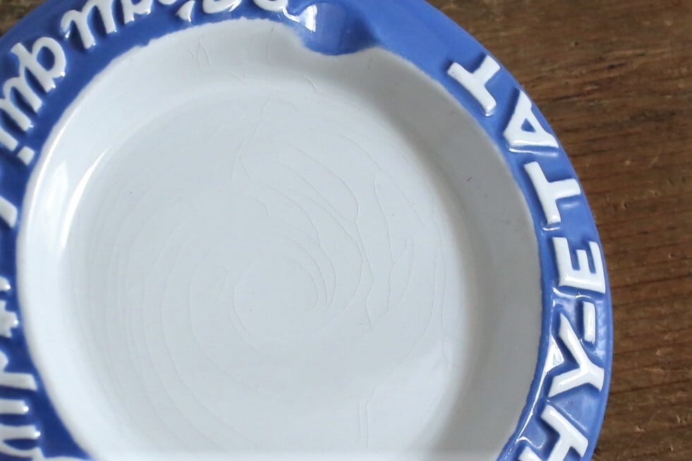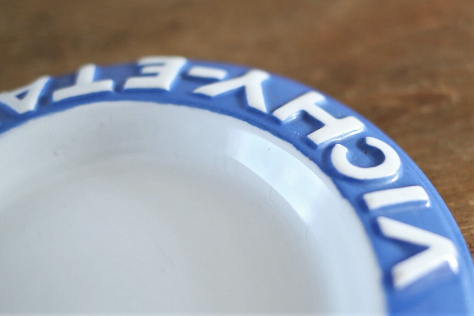 フランス アンティーク ヴィンテージ 『VICHY-ETAT』灰皿 白×青 N-00757