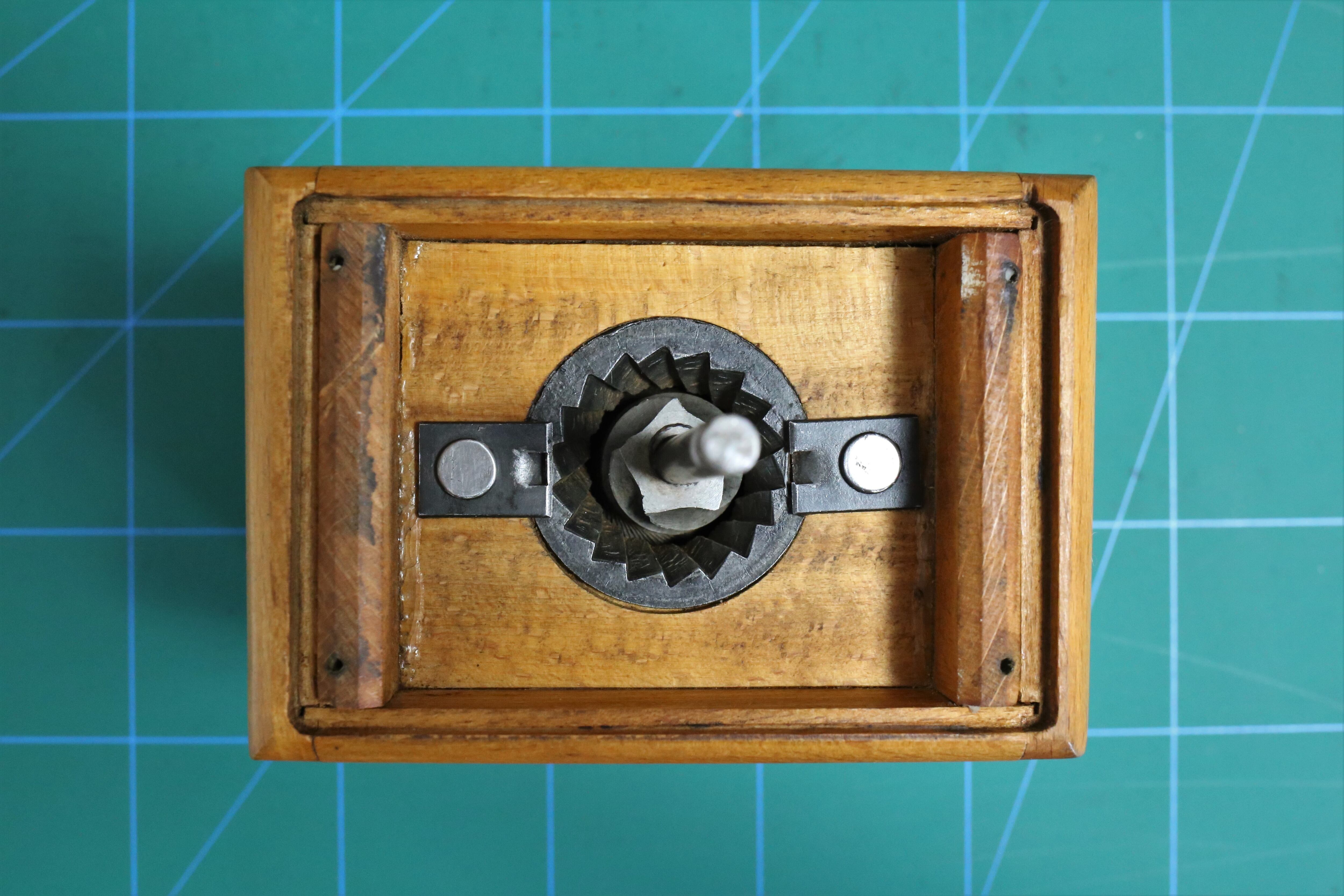 引き出し部分を取り出して、中のレバーを回すと豆の挽き加減が調整できます。