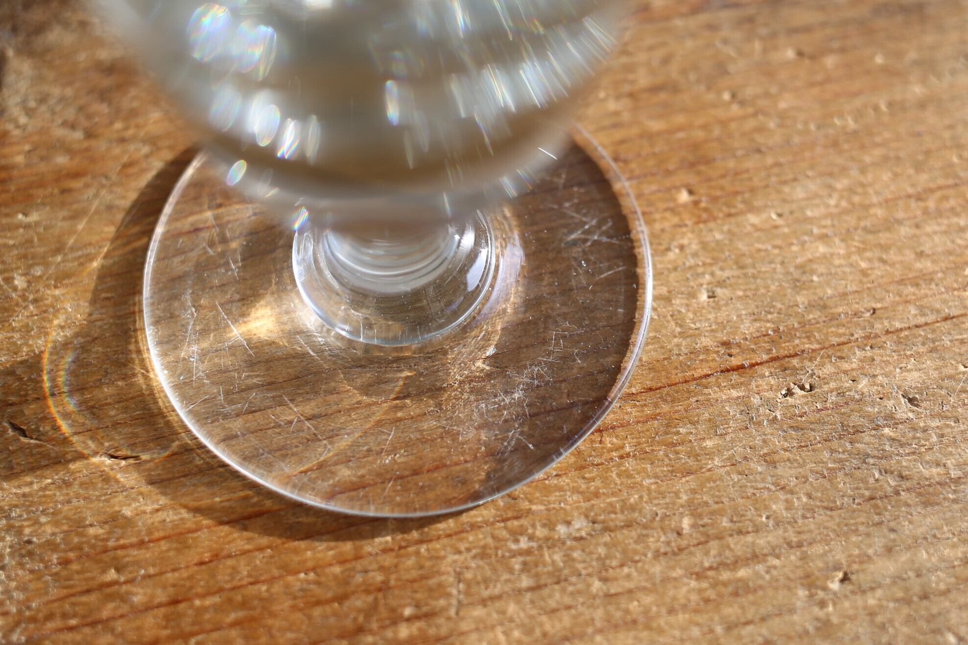 細かいキズやスレはありますが良い状態で古いグラスならではの素敵な風合いです。