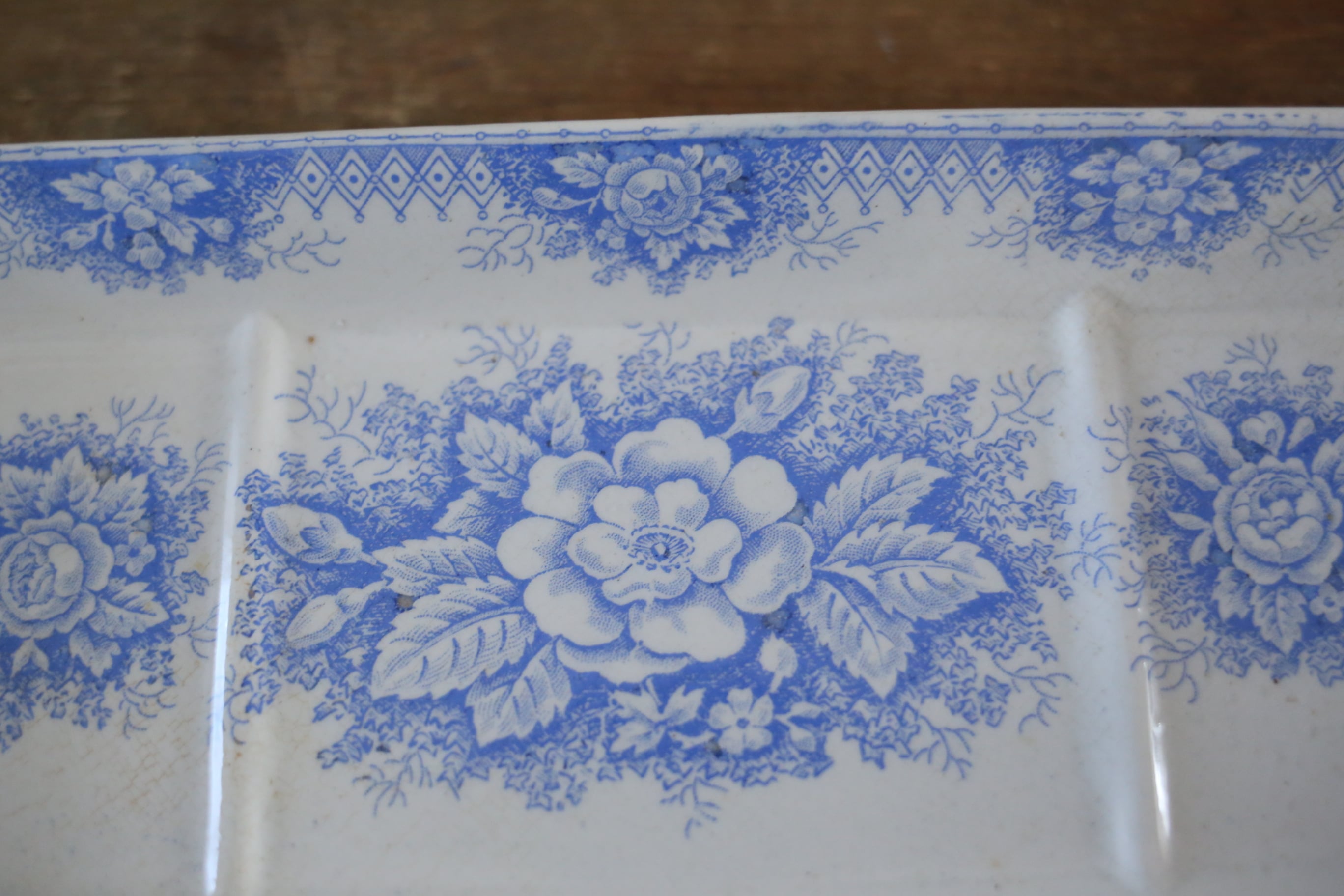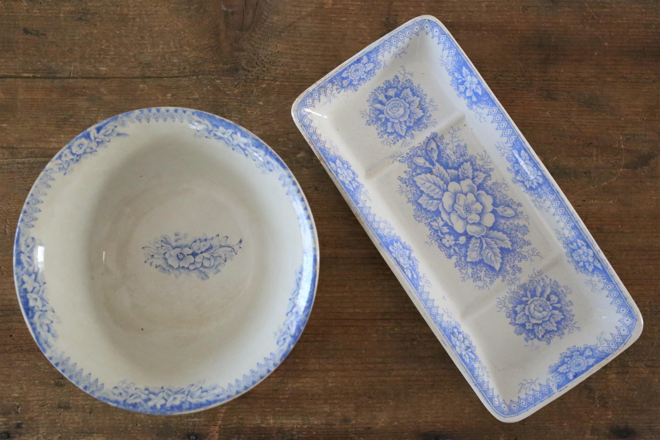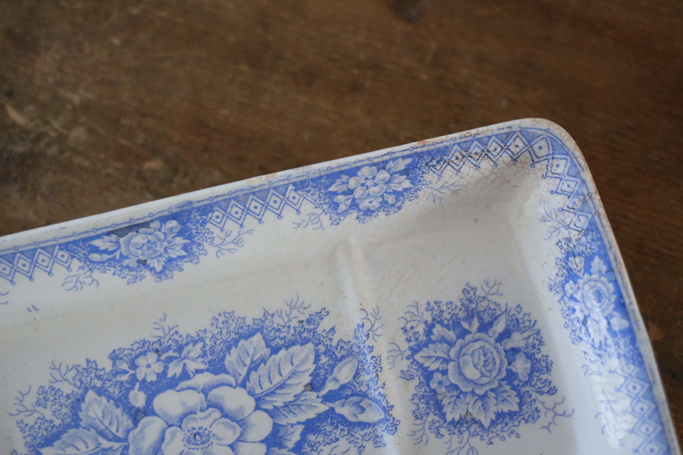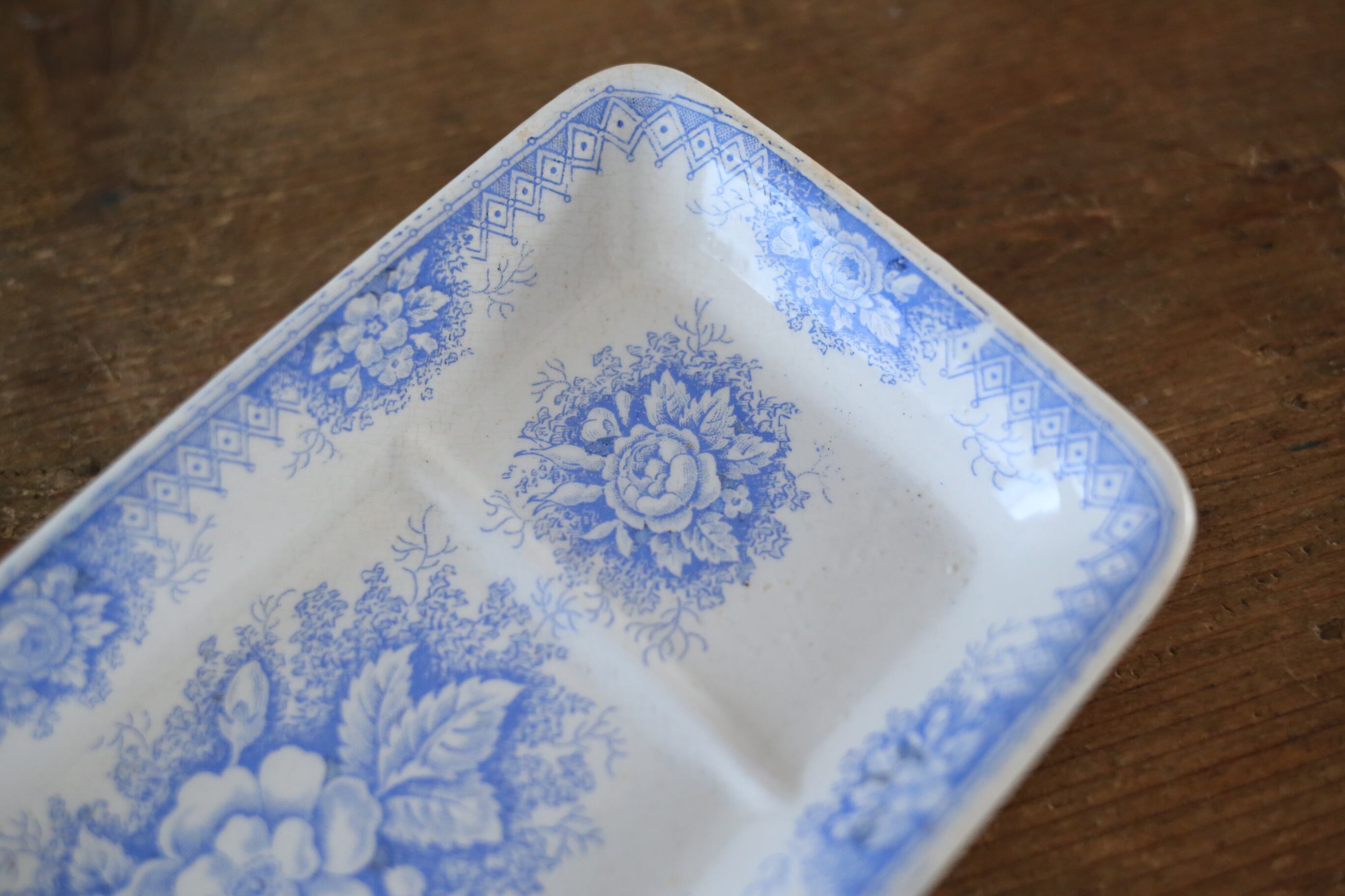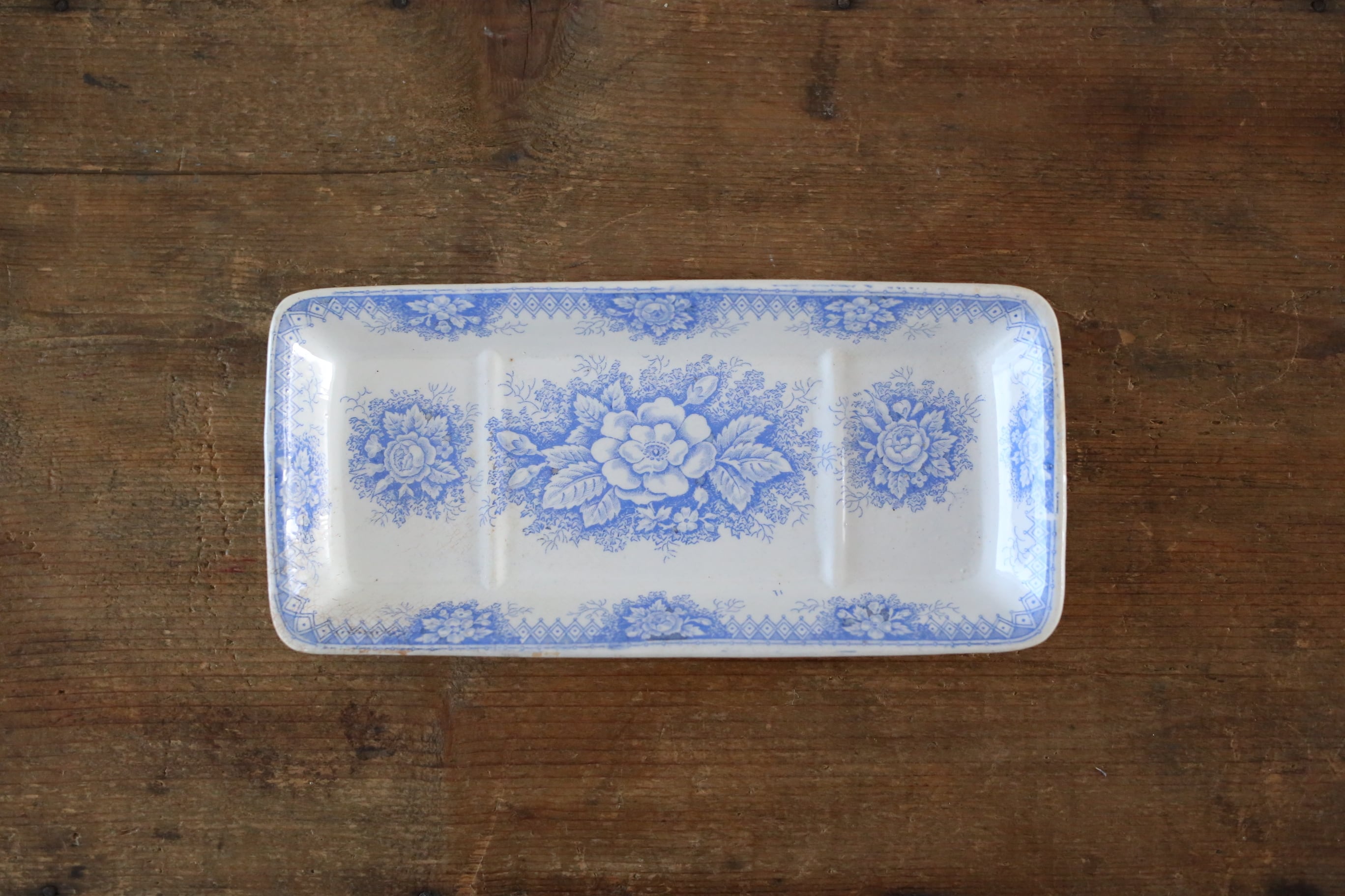 洗面台周りの陶器セットの一つで櫛やブラシを置く為のトレイだったようです。