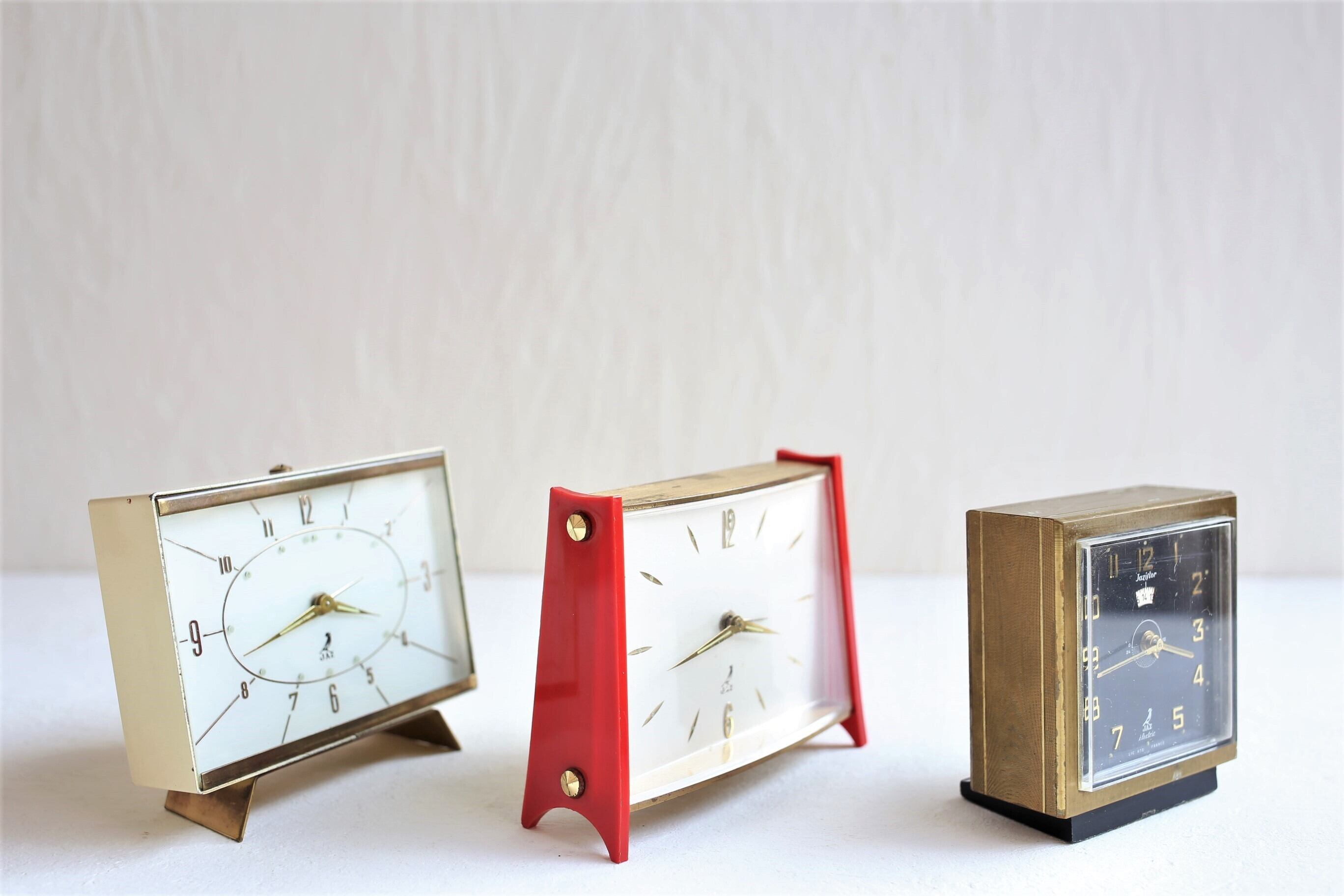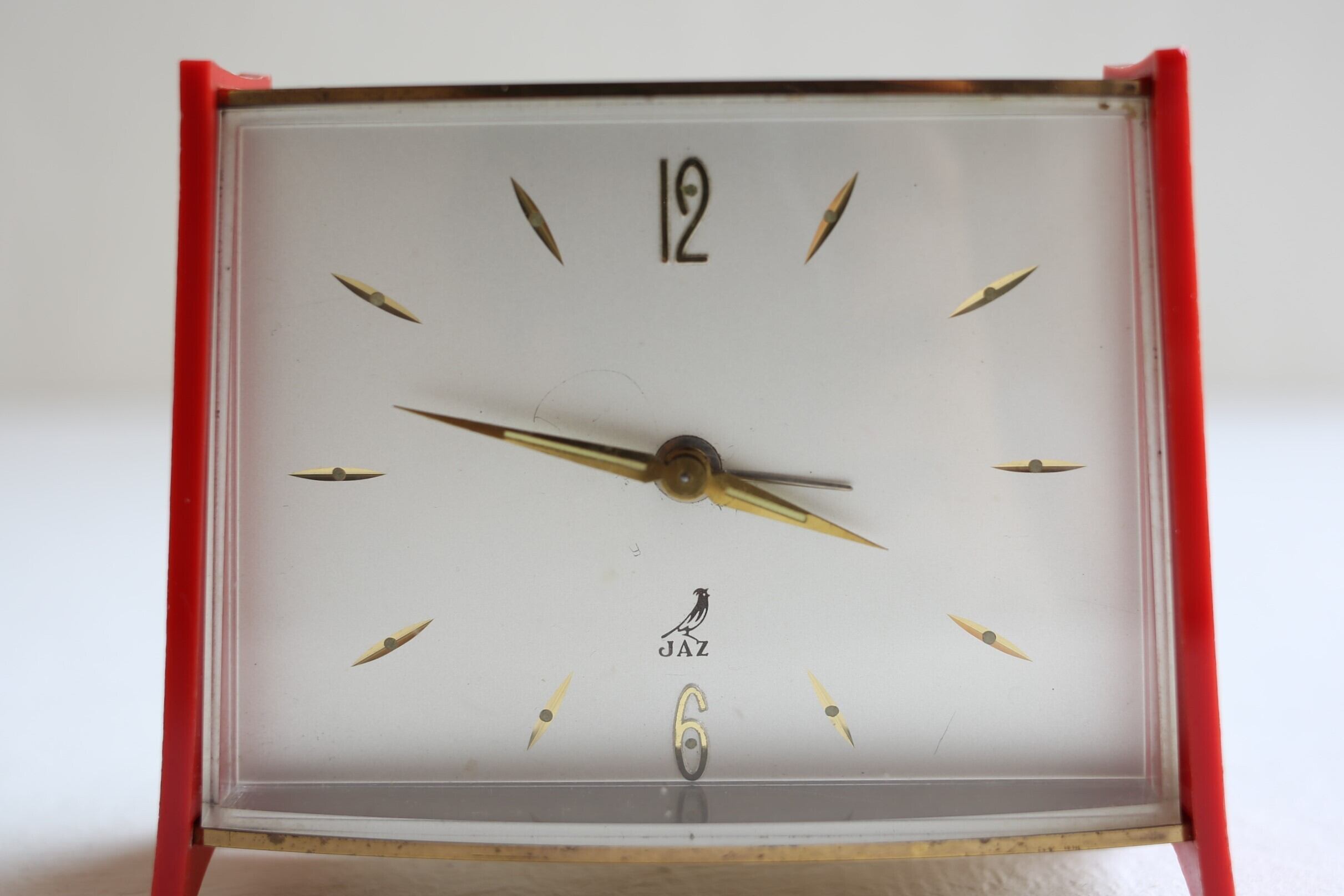 フランス アンティーク ヴィンテージ JAZ 目覚まし時計 台形 ゴールド×赤 N-01078