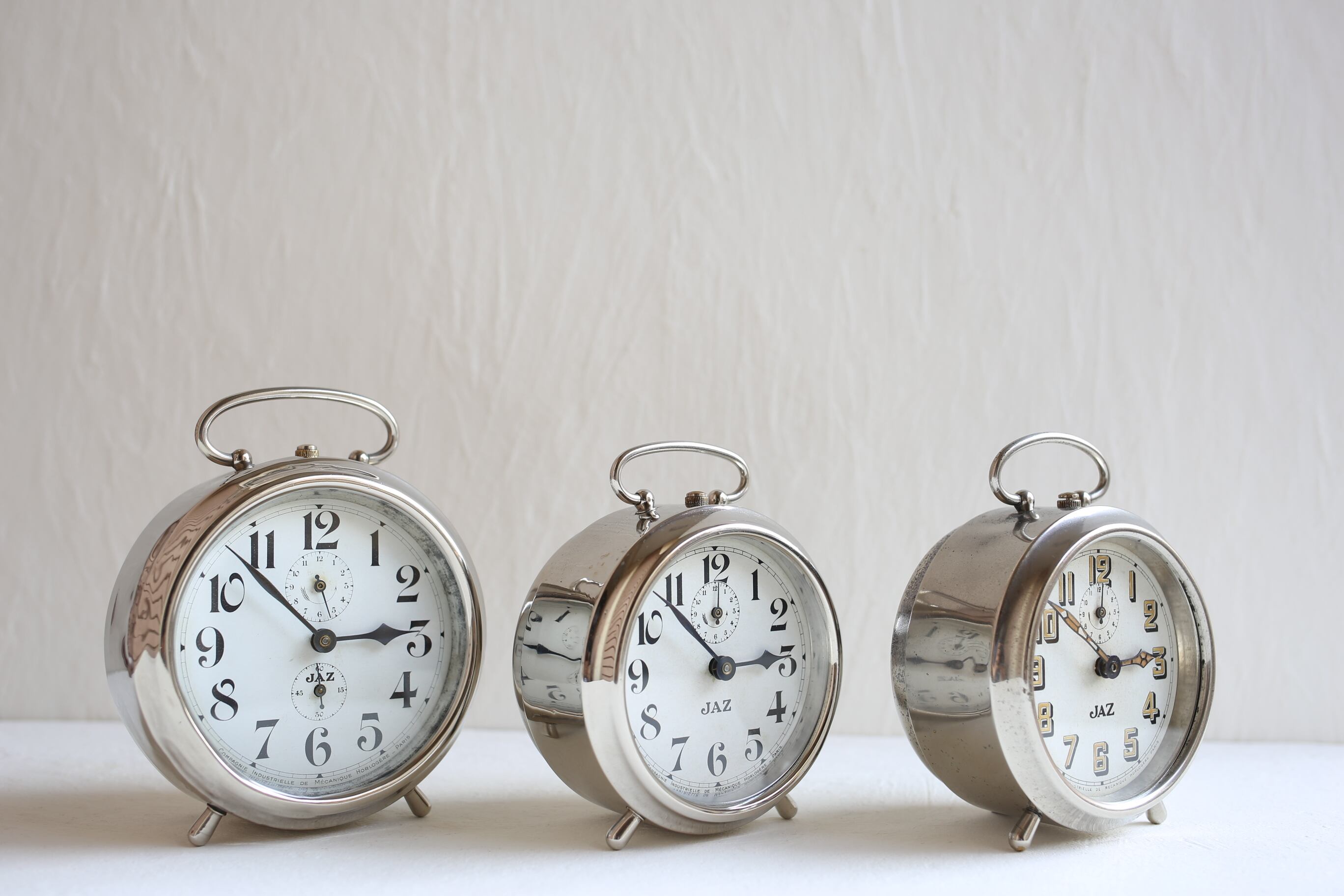 フランス アンティーク JAZ 目覚まし時計 初期モデル クローム 黒数字 N-02954