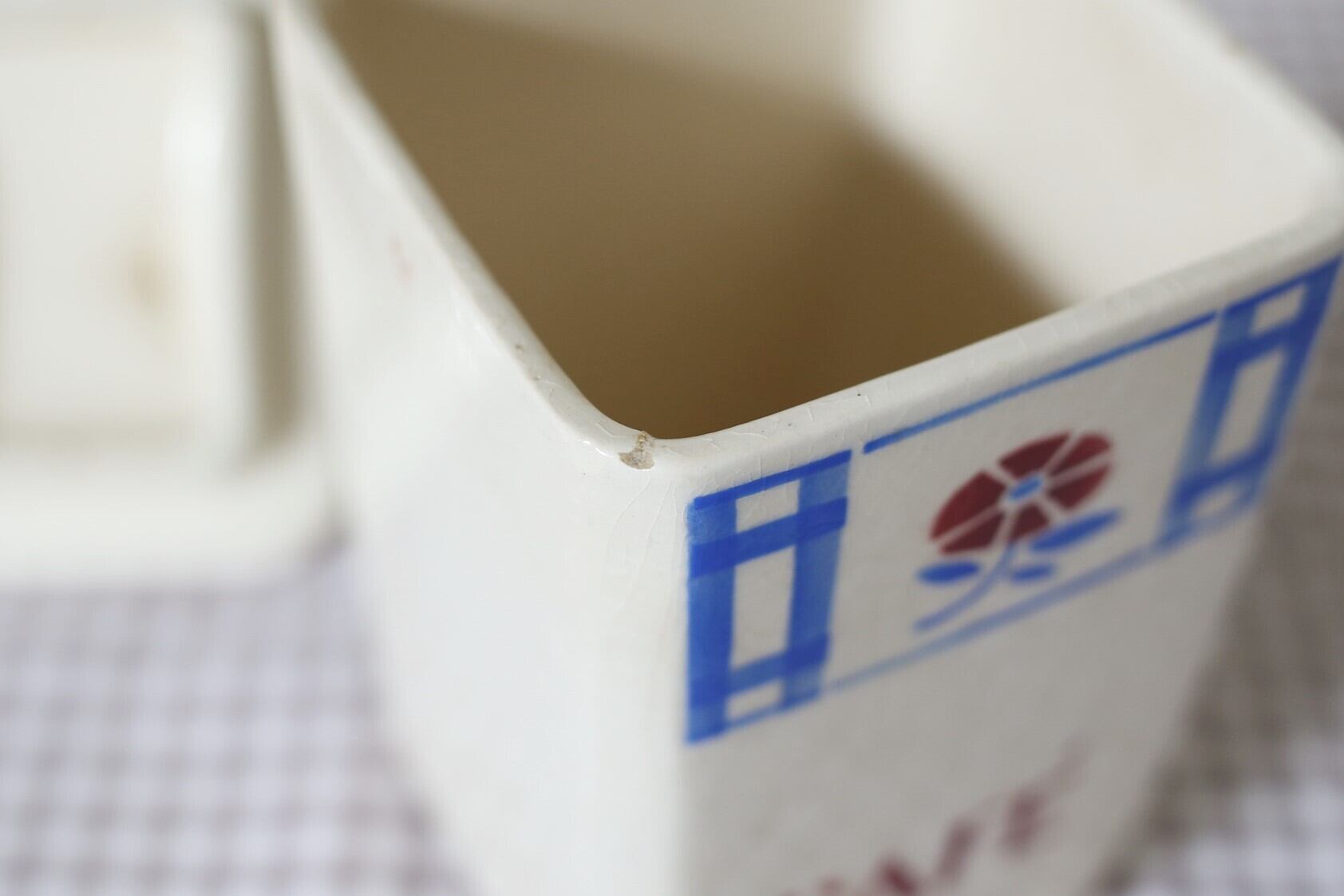 フランス Badonviller窯のアイボリーの陶器のキャニスターです。