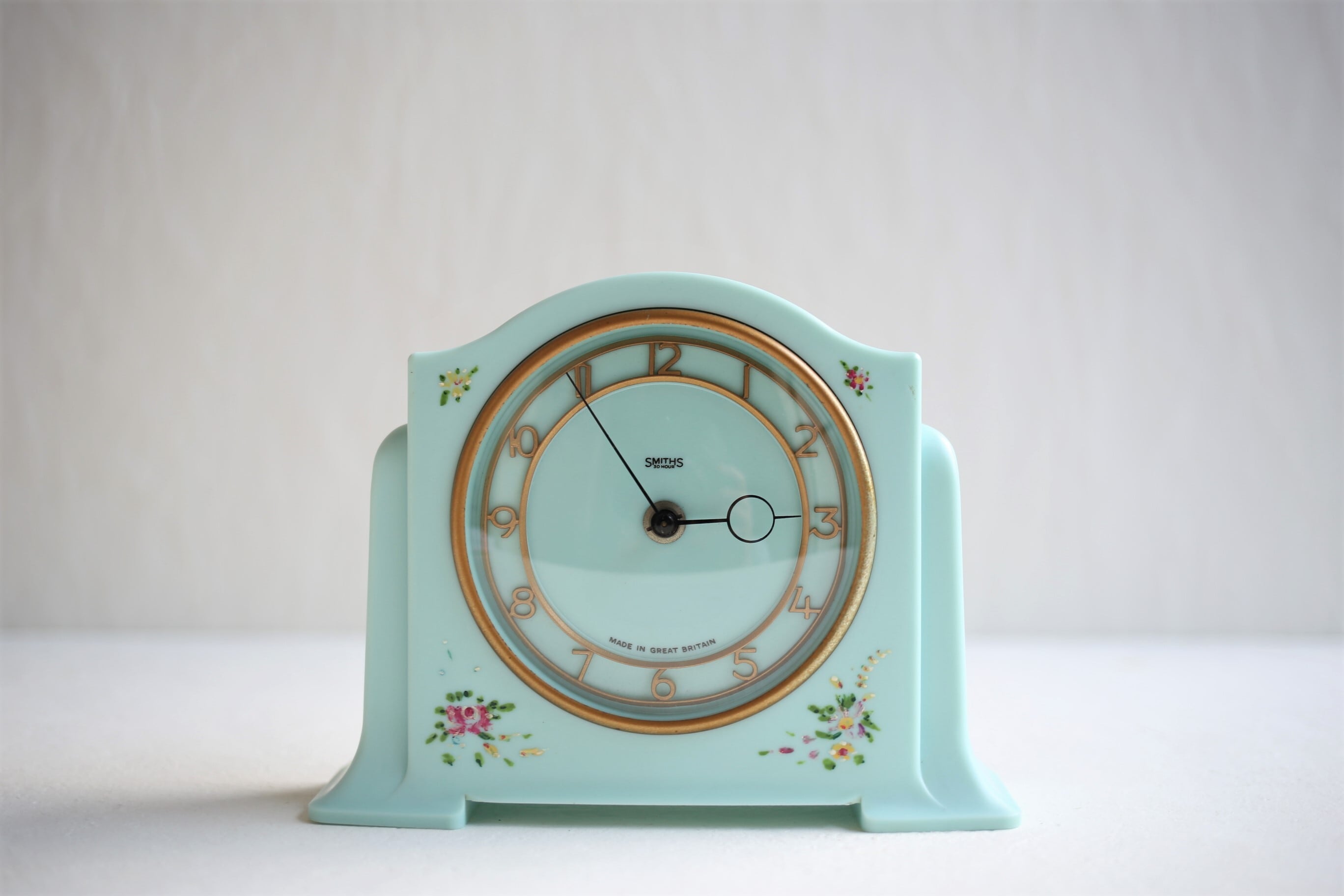 イギリス アンティーク ヴィンテージ SMITHS 置き時計 ハンドペイント 花模様 N-02853