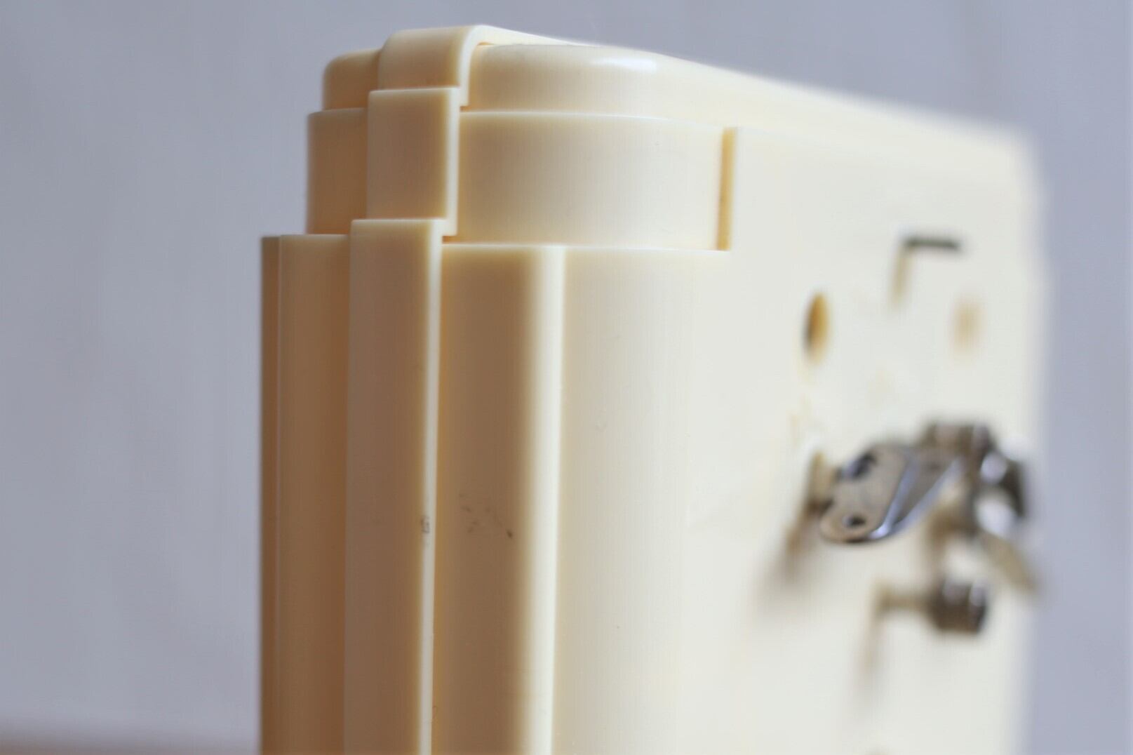 ケースはおそらくプラスチック製ですが、この時代はプラスチックとベークライトが混在しているので見分けが難しくベークライトの可能性もあります。