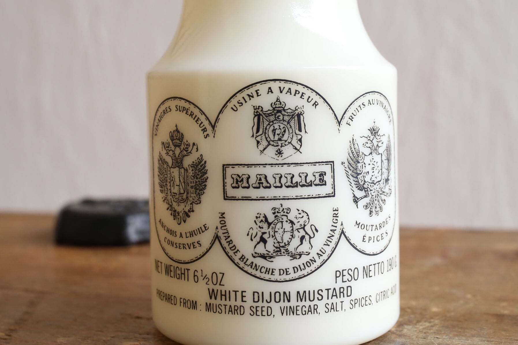 フランス アンティーク ヴィンテージ Maille マイユ ミルクガラス製 マスタードポット N-01278