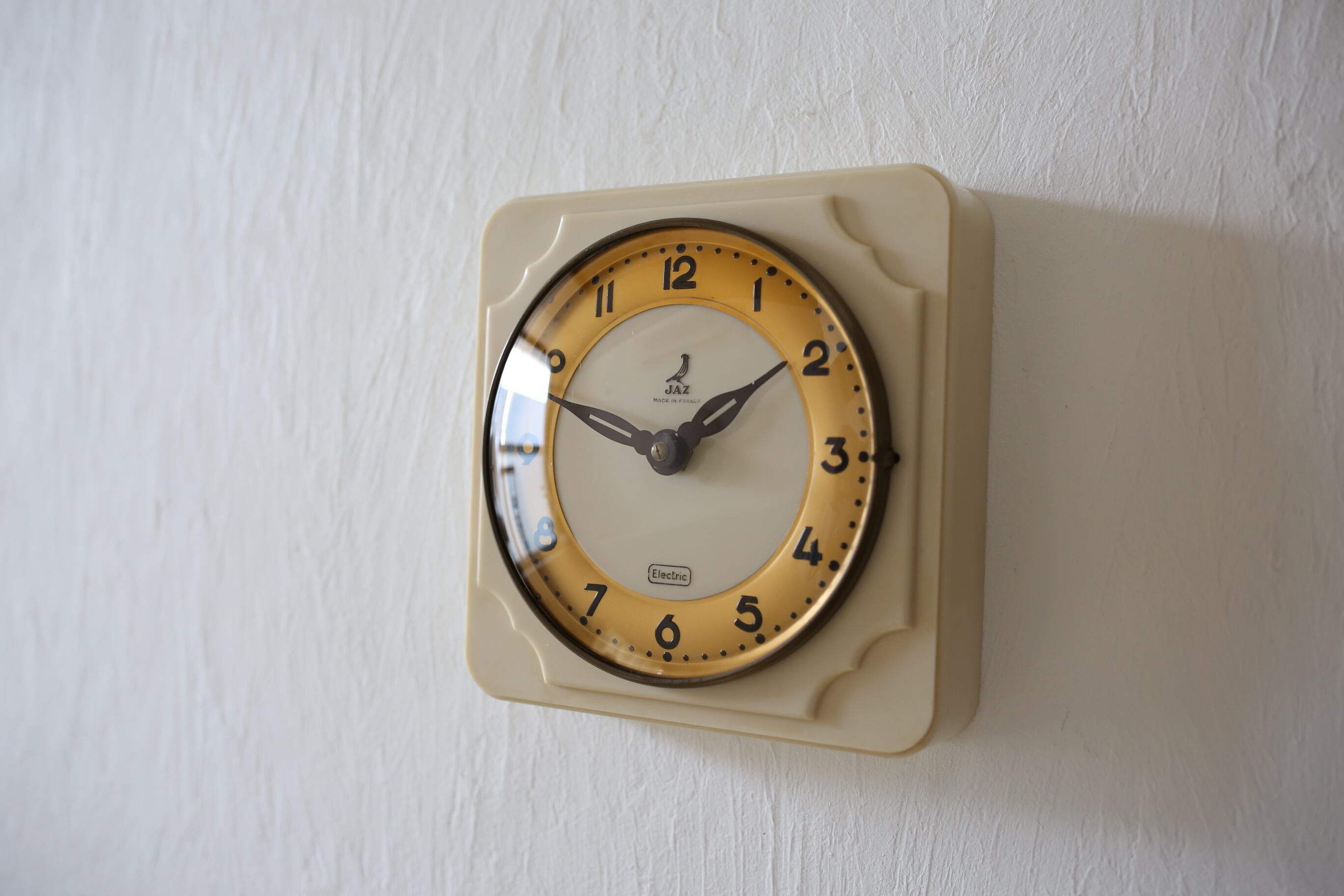 スイープ式クォーツ交換:フランス アンティーク ヴィンテージ JAZ 壁掛け時計(ベークライト)N-03011