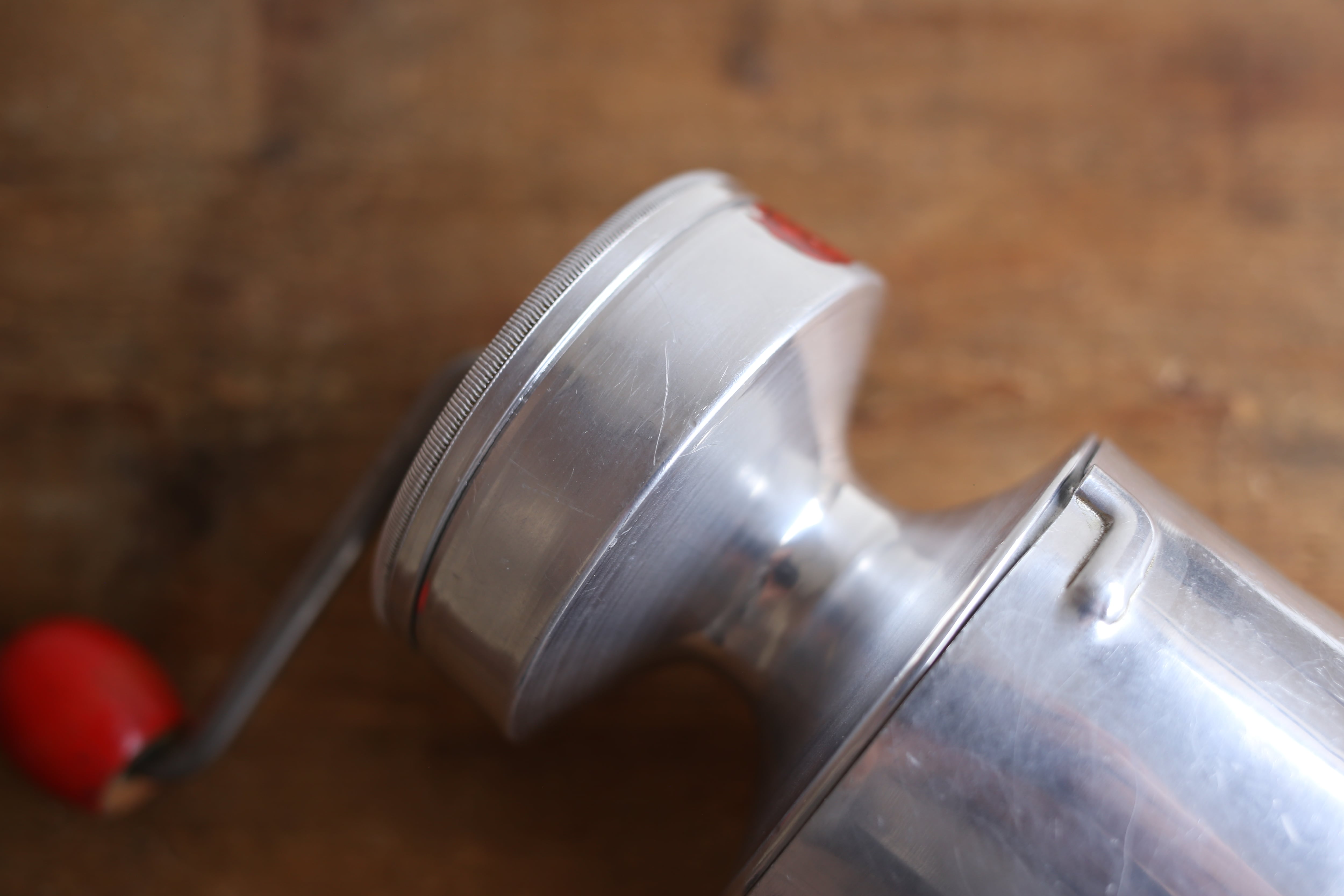 人気のコーヒーミルで良い状態のものはなかな見つかりにくくなっていますが、ダメージはありますがオリジナルの赤いシールも残ったこの状態のミルは希少です。