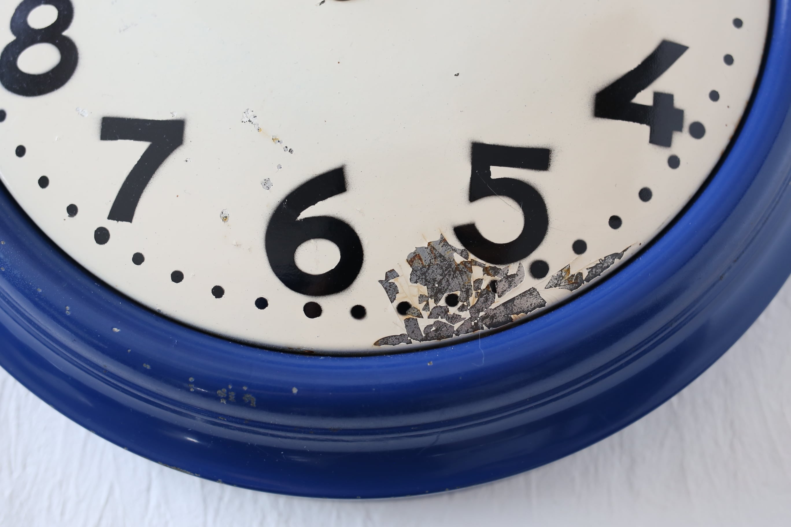 直径約30cmという大きさと視認性の高さから公共施設やアトリエ、工場などで使用されていたものかもしれません。