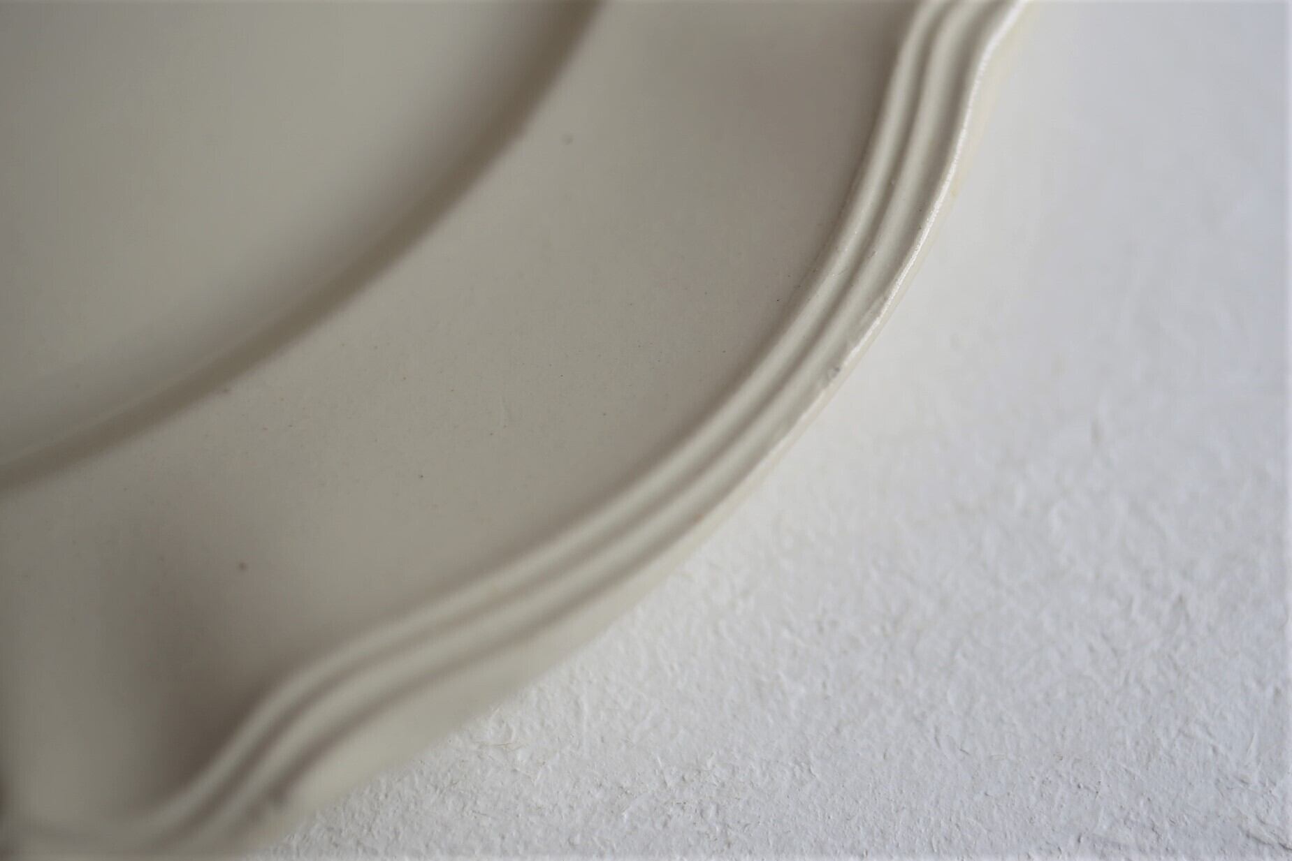 フランス ディゴワンサルグミンヌの花リム皿はクリーム地に釉薬の艶、丸みがあり優しく波打ったデザインがとても印象的です。