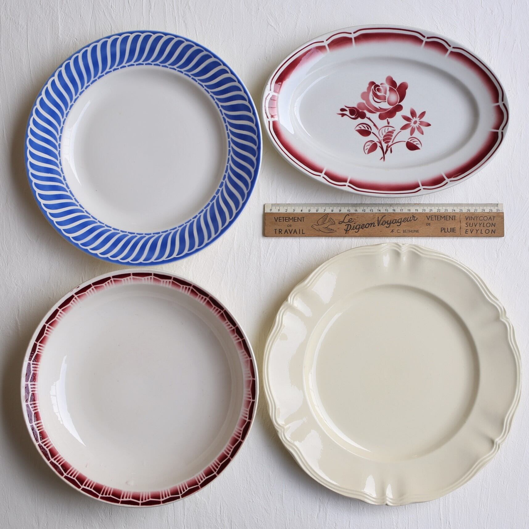 フランス アンティーク ヴィンテージ Sarreguemines サルグミンヌ 花リム 大皿33.5cm N-03025