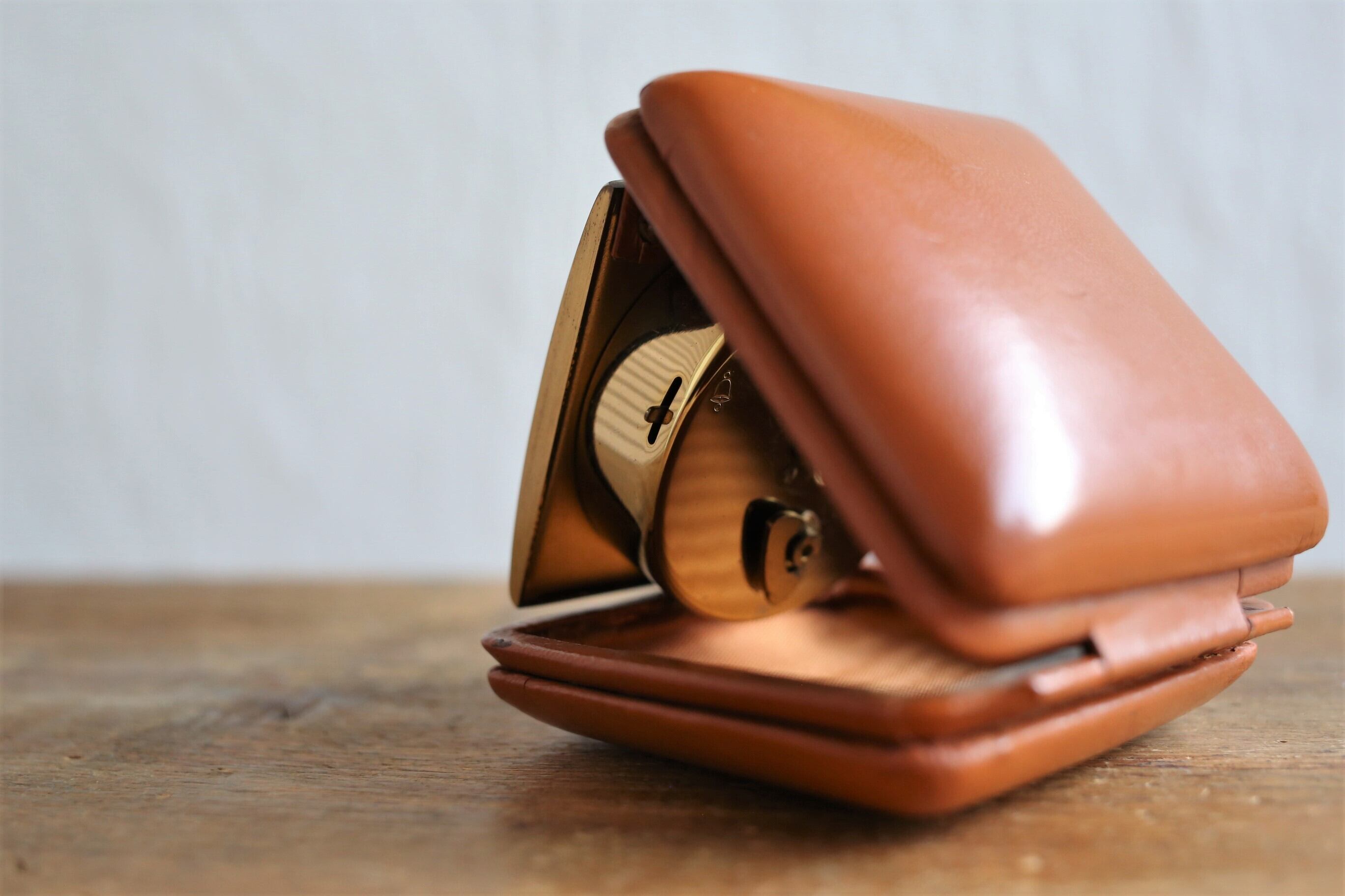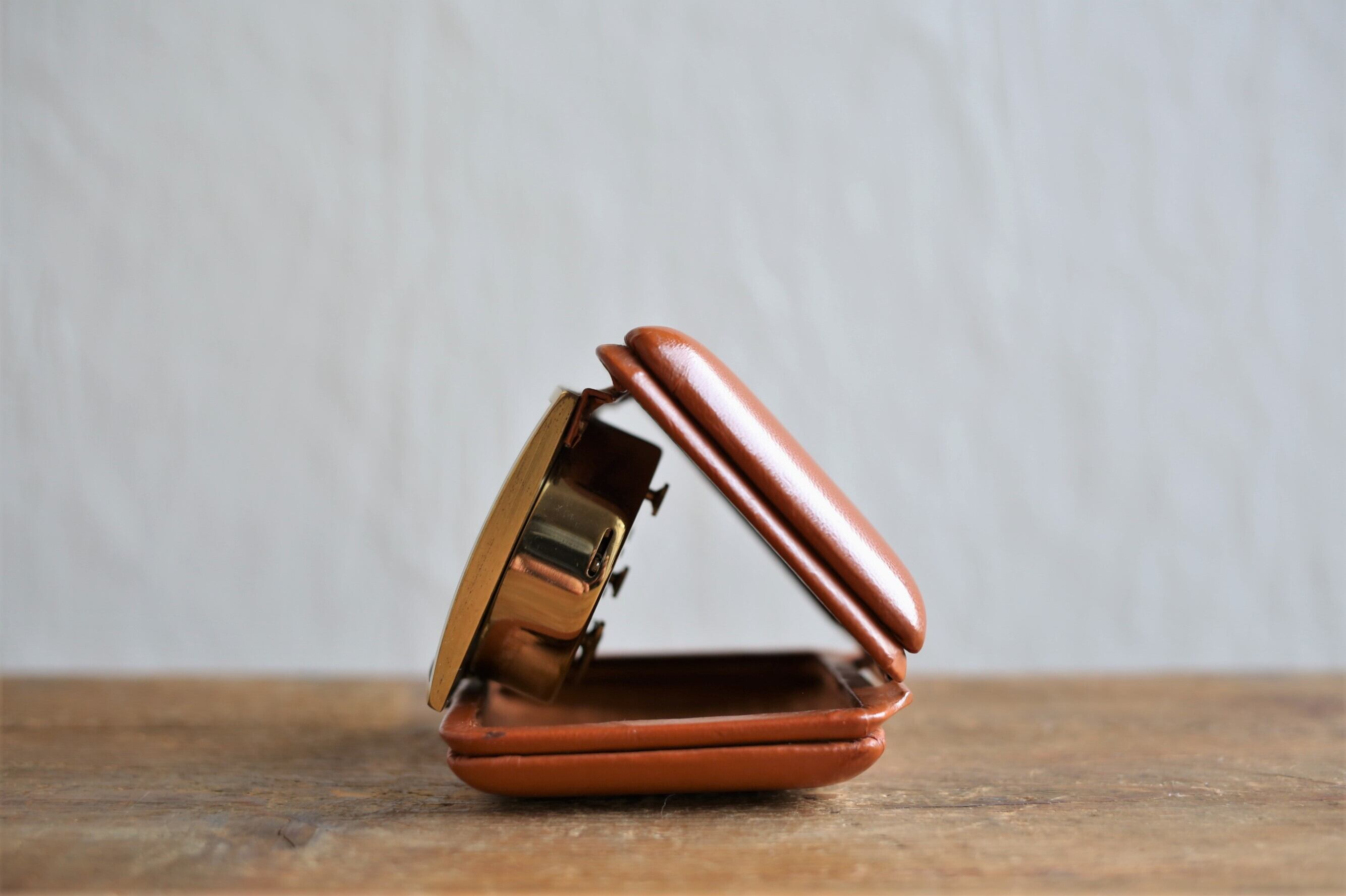カバーに多少のスレや微細なキズはありますが、全体的に使用感も少なく良い状態でトラベルクロックですが、いつも開いて飾っておきたくなる素敵な時計です。
