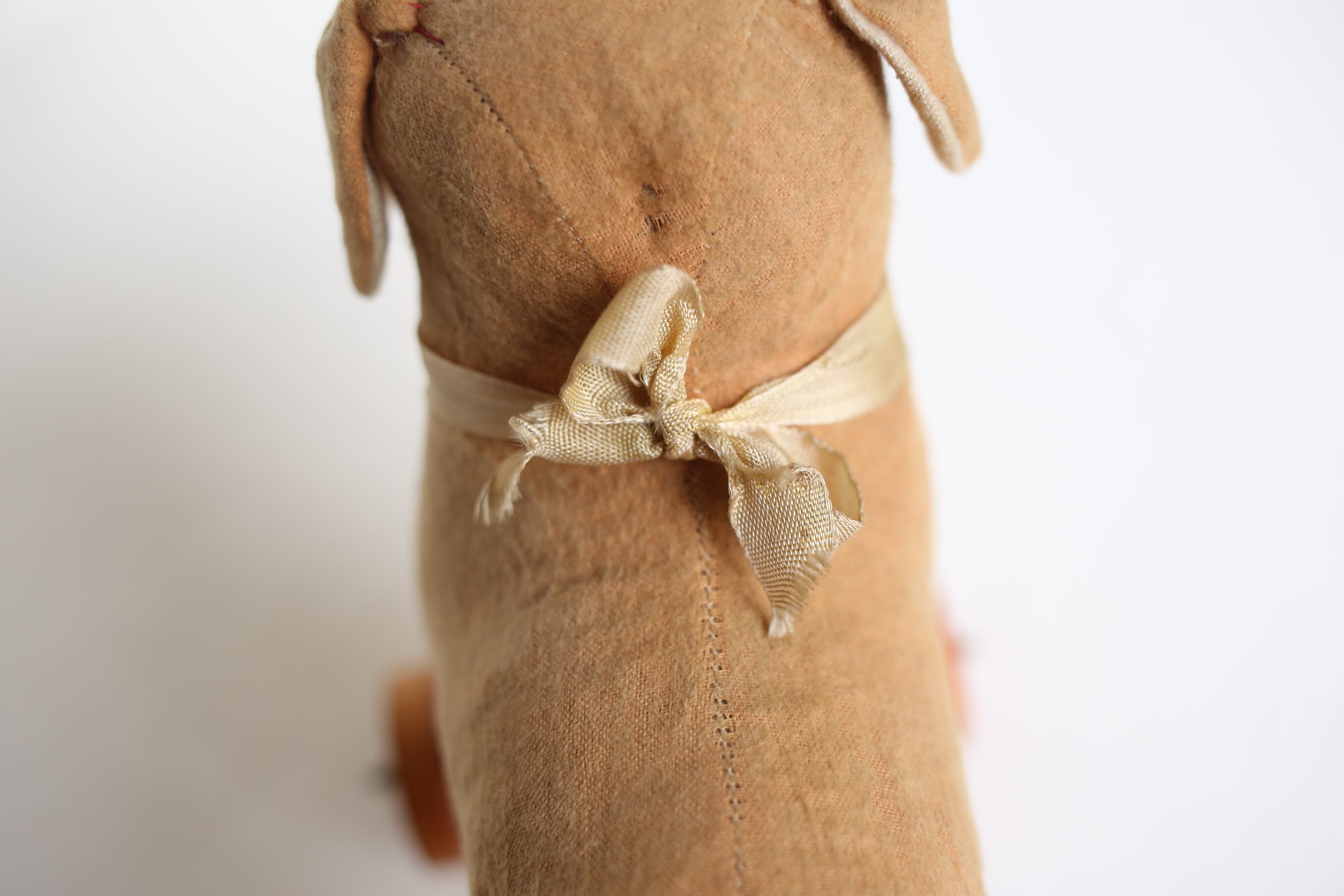 全体的に色焼け(正面右側の方がわずかですが色が薄くなっています。)や生地自体が薄くなっている箇所があり、また耳に赤い糸で補修された跡が見られますが、全体的にはとても良い状態で長年大切に可愛がられてきたことがわかる素敵な佇まいです。