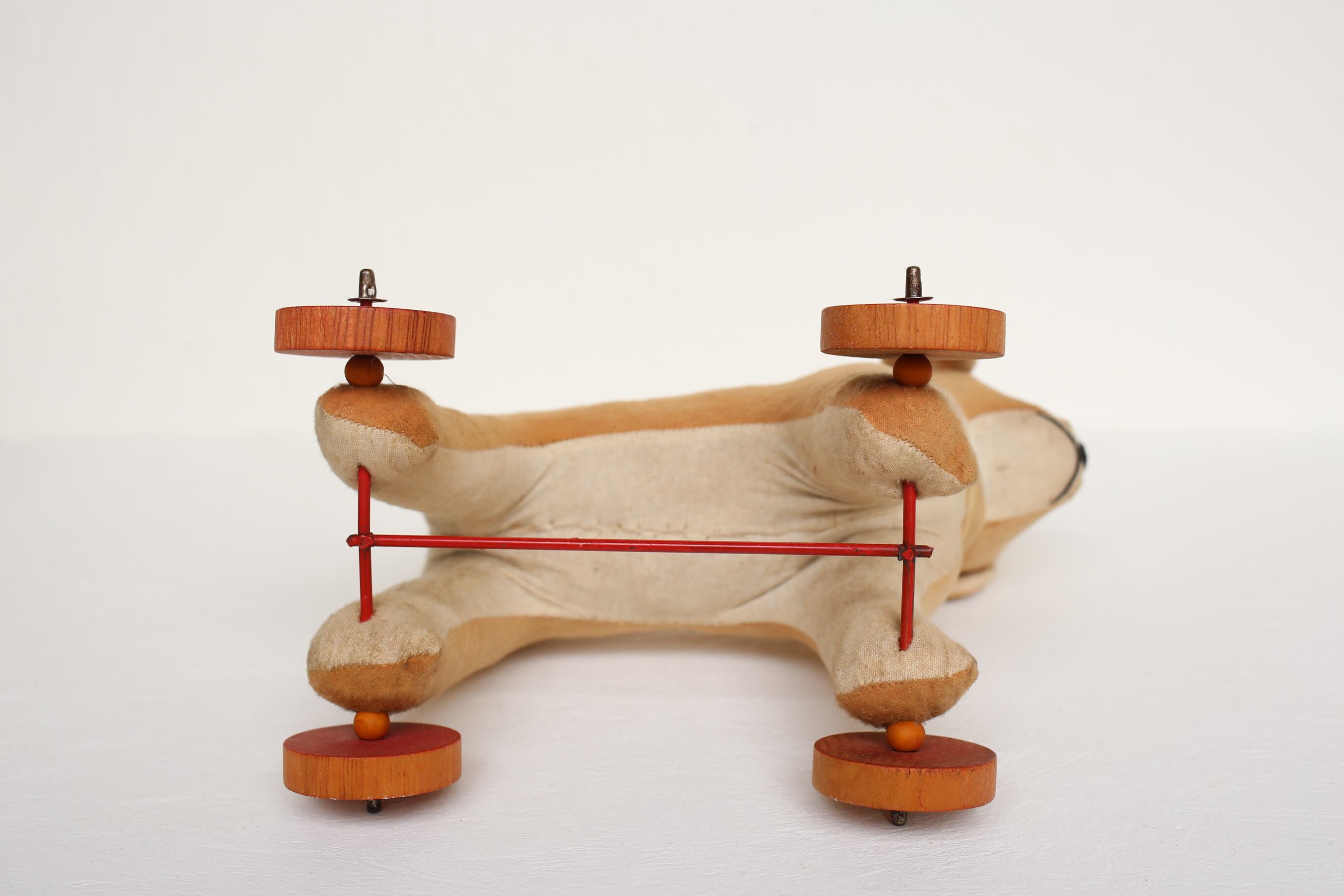 フランス アンティーク ヴィンテージ つぶらな瞳の車輪付きのイヌ プルトイ N-03070