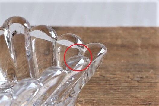 上部の縁に4mm弱のカケが一箇所あります。(赤丸箇所)
